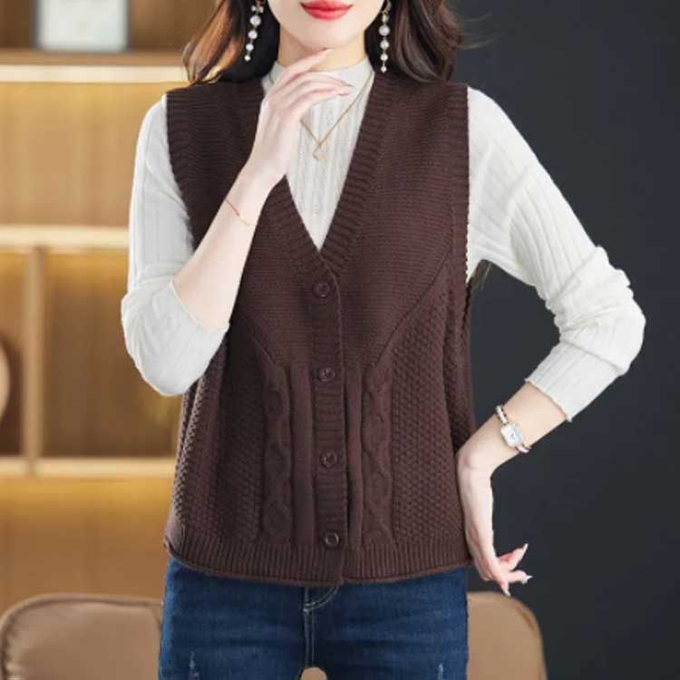 今っぽくレイヤードコーデの定番ニットベストが新登場しました。