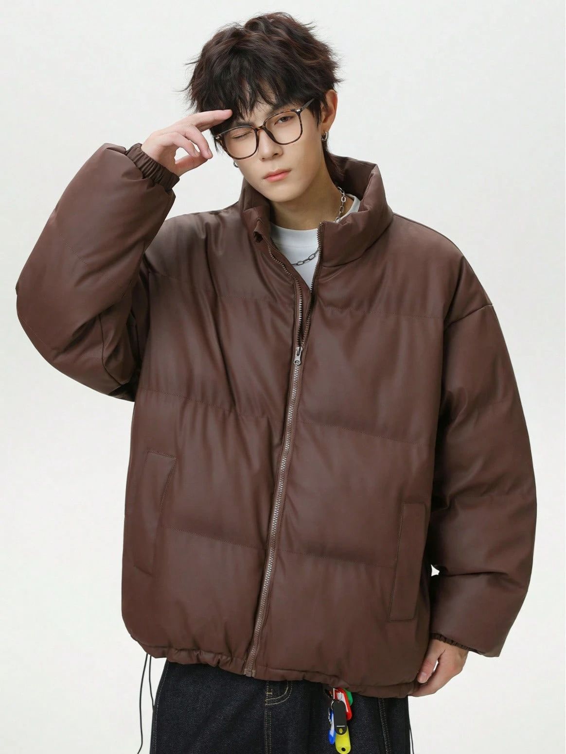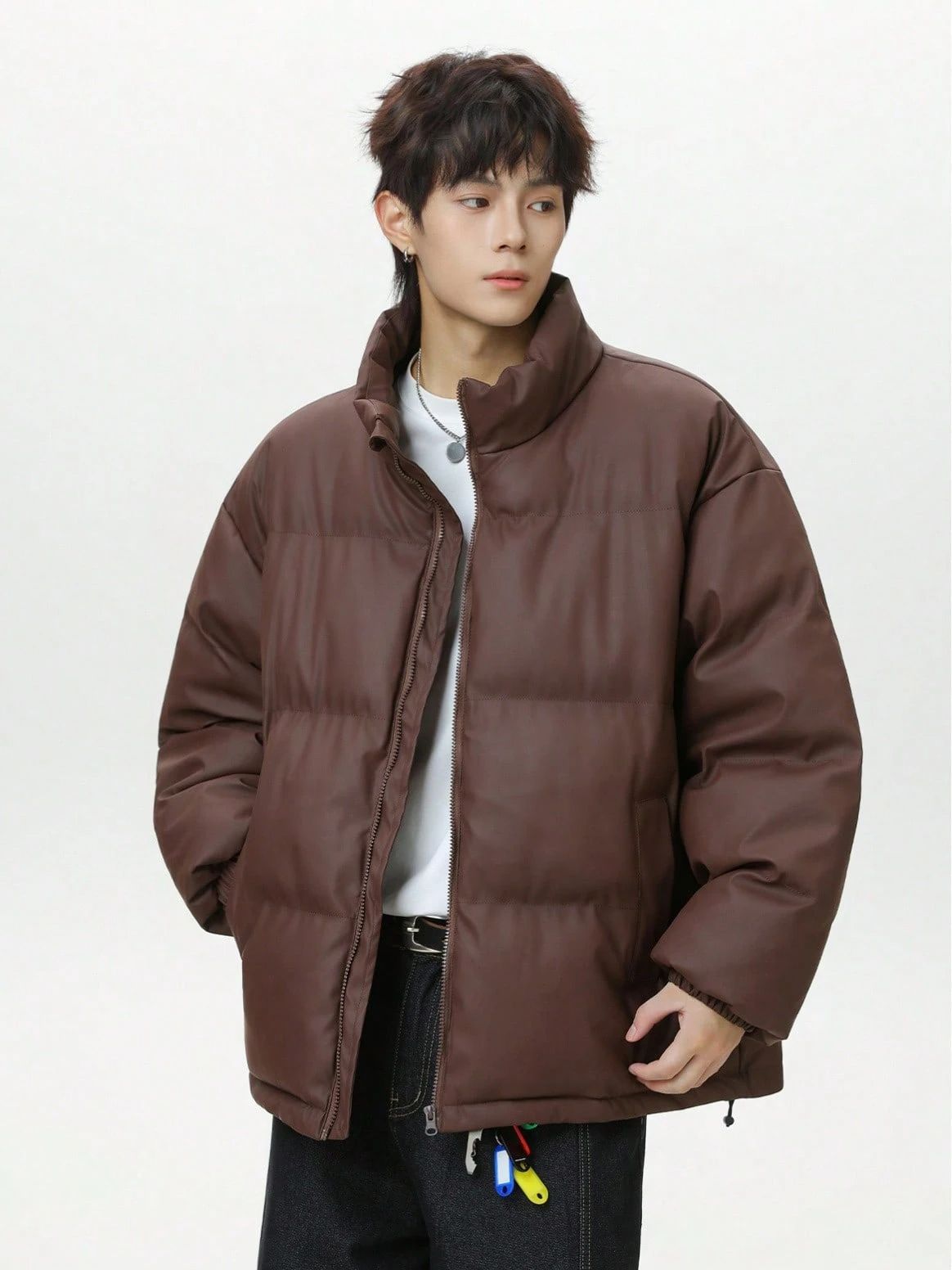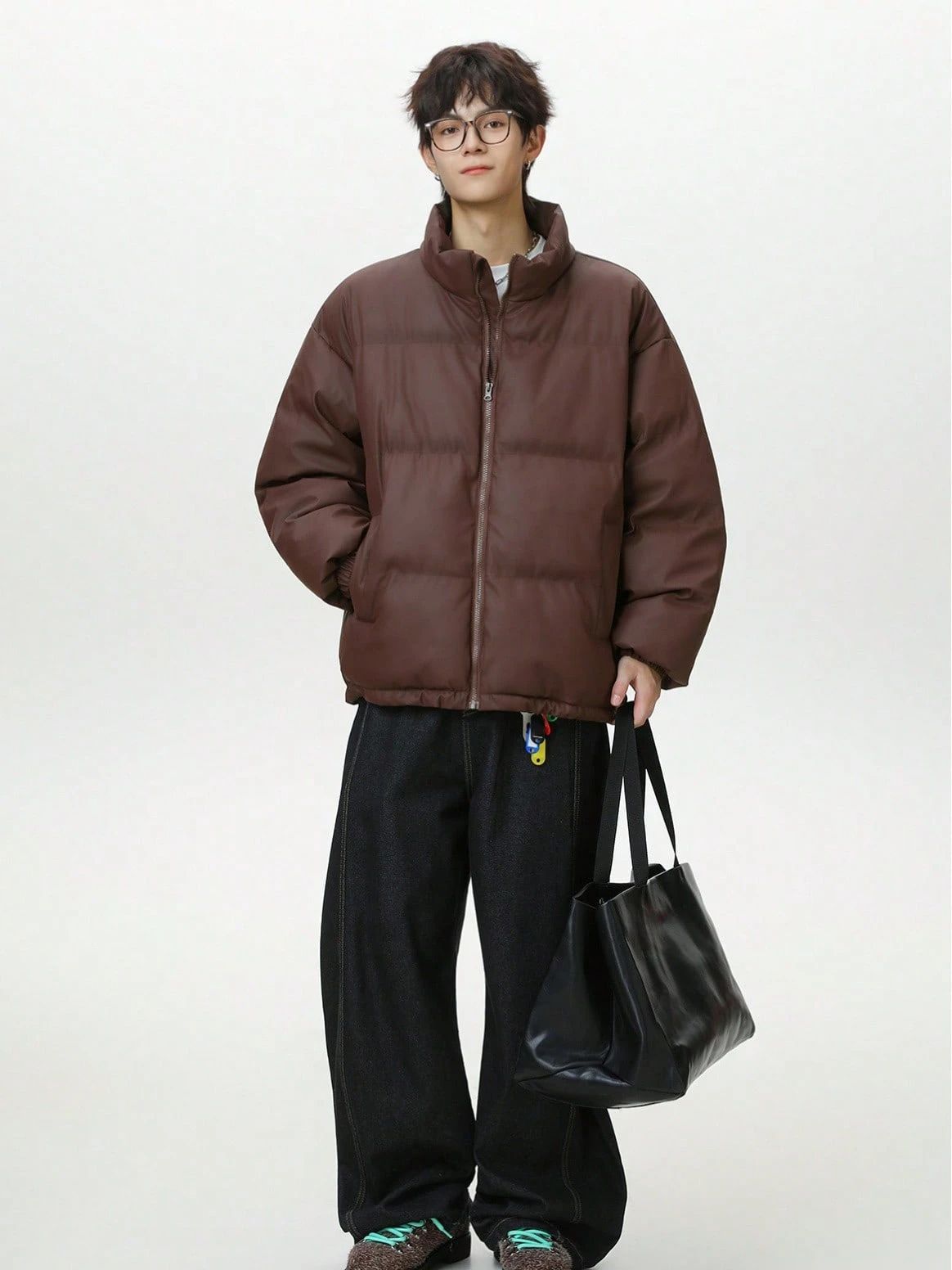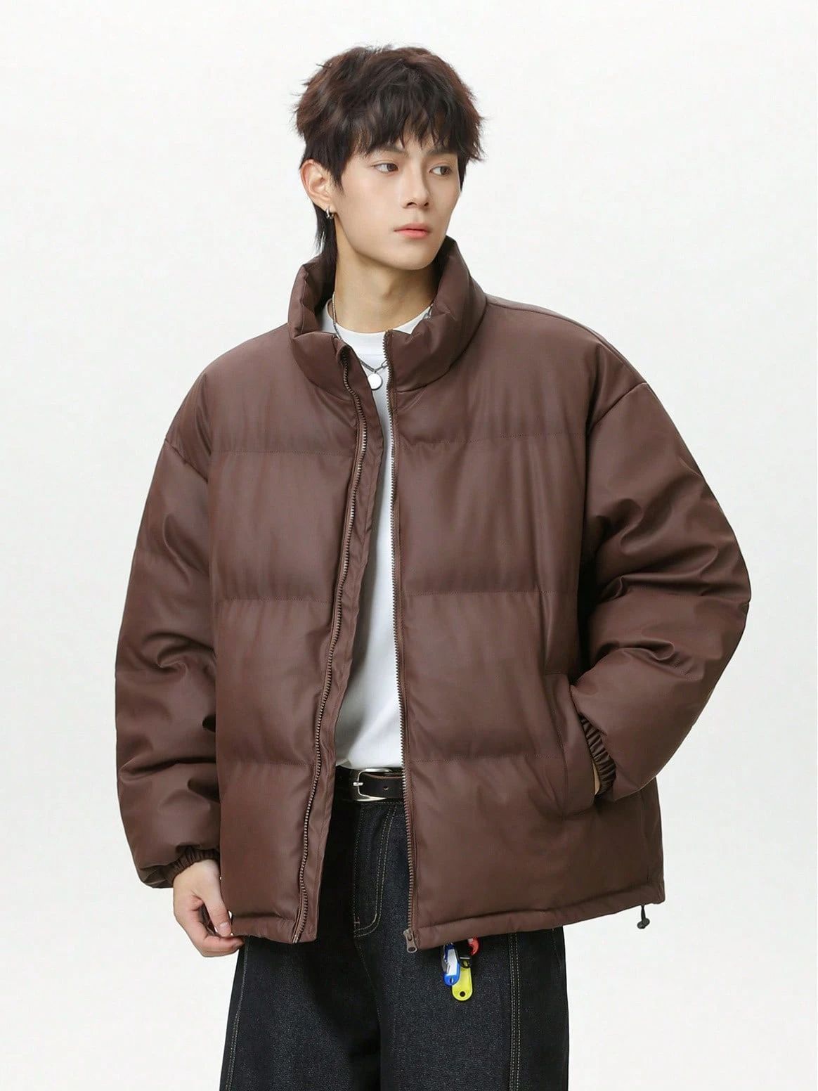 【冬季 潮牌 パフコート】メンズ アメカジ スタンドカラー 純色 厚手 保温性豊か ルーズフィット カジュアル百搭 ベーシック款