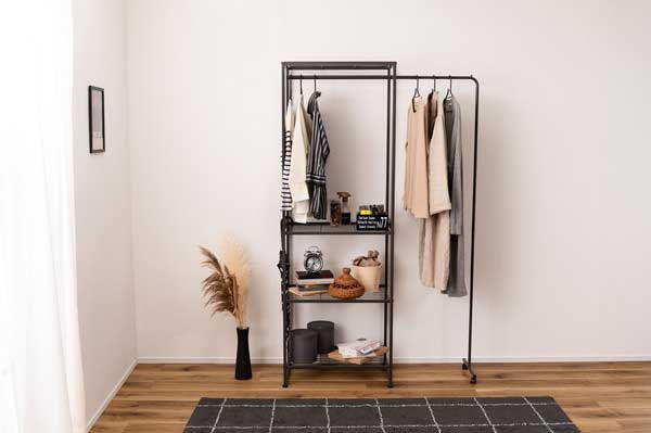 ●シンプルで、置く場所を選ばないスチール製のラック。