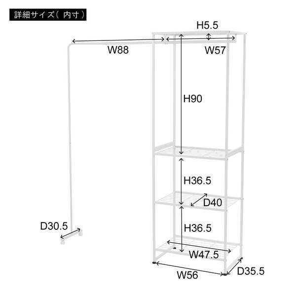 【機能】アジャスター付き(ラック) 伸縮可能2段階ハンガー付き キャスター付き(ハンガー)