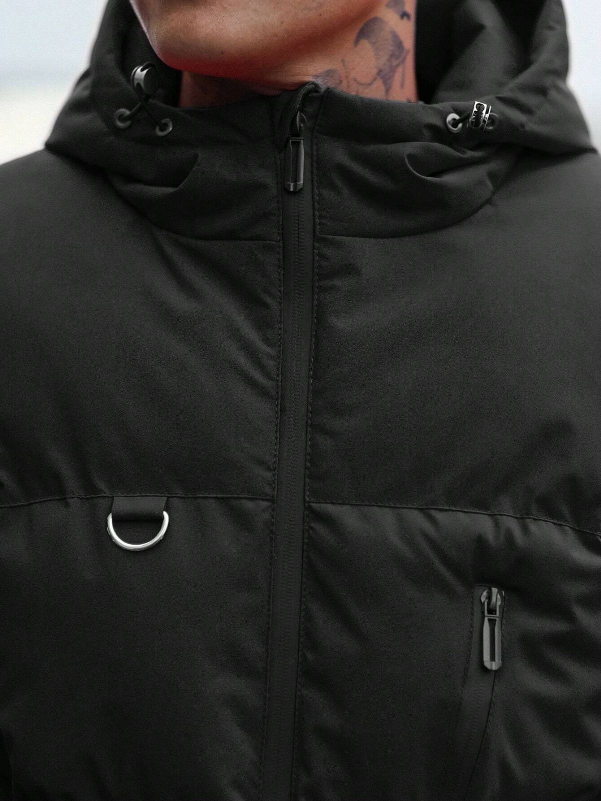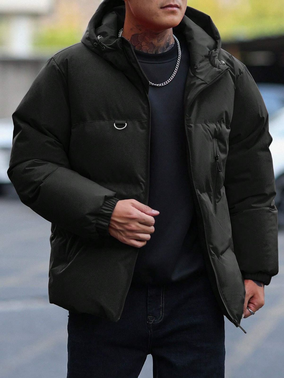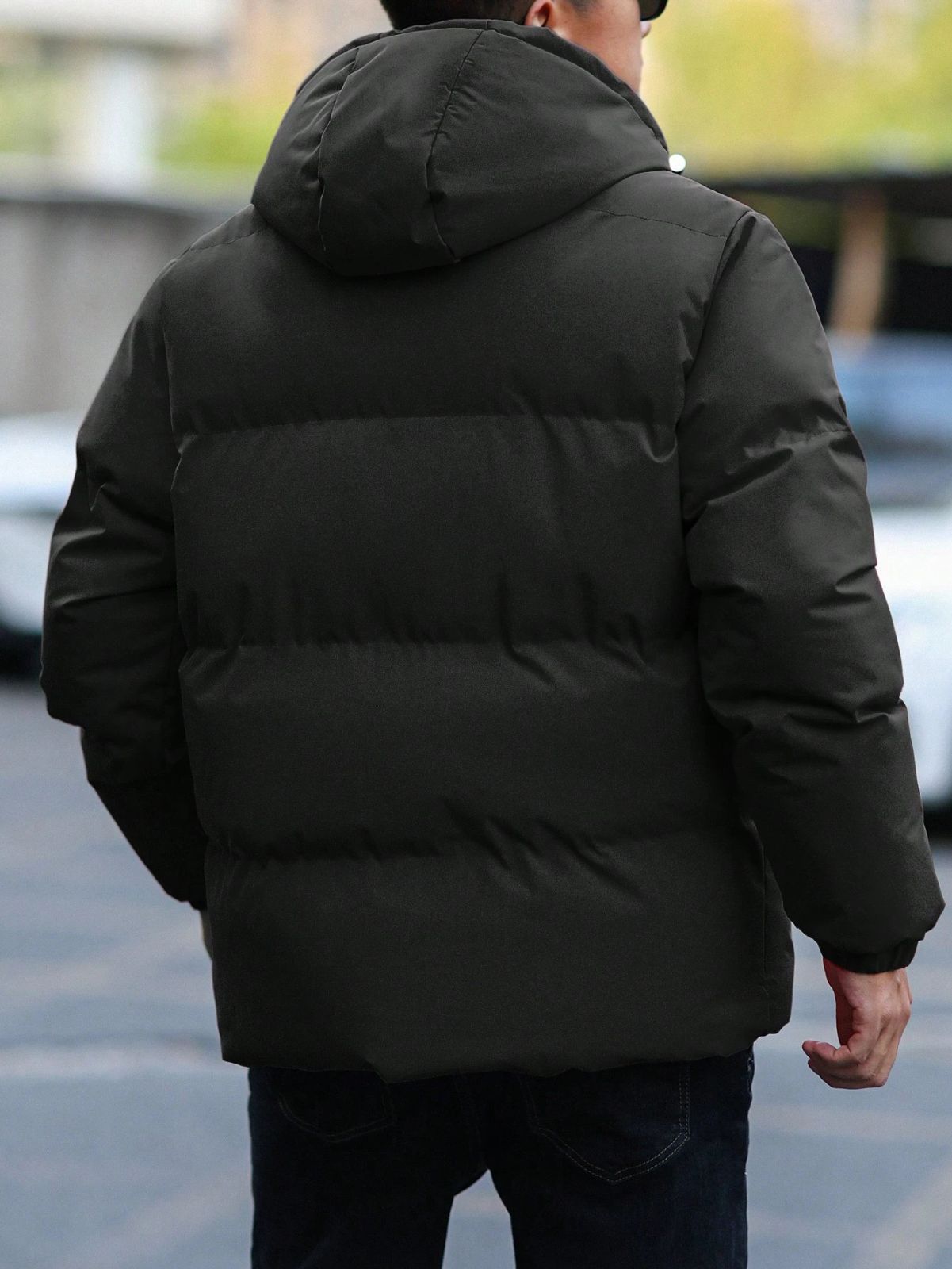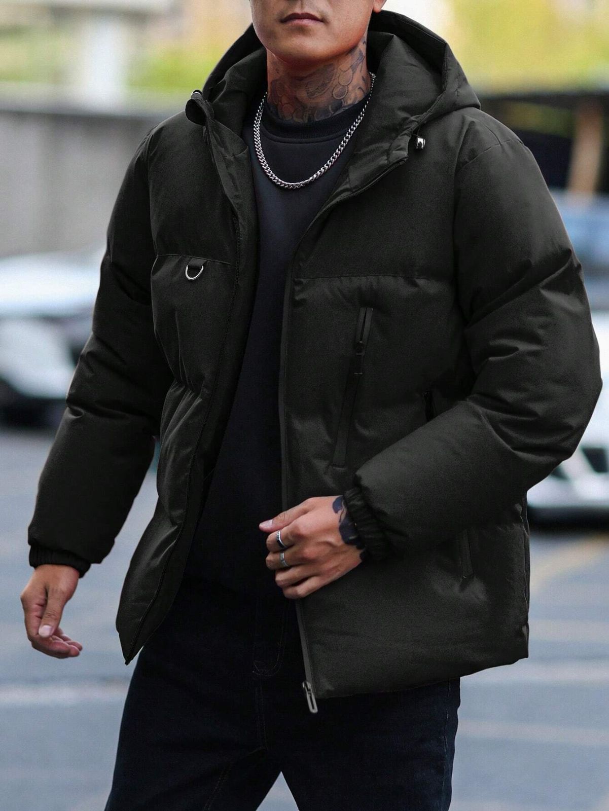 Manfinity Homme メンズ 無地 フロントジップアップ 長袖 ミニマリスト カジュアル メンズ フード付き ウィンターコート、メンズアウターウェア、秋用
