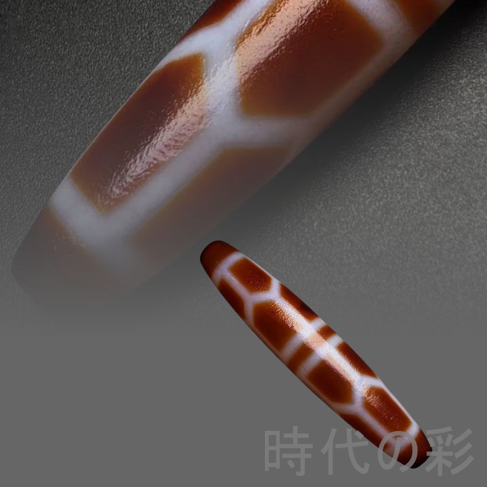 ?紋文様を有する老料天珠。長寿・安定の象徴として知られ、落ち着いた時代感が魅力の一品。