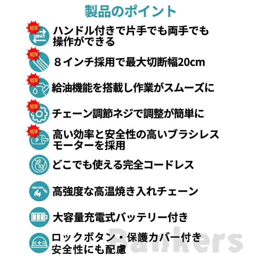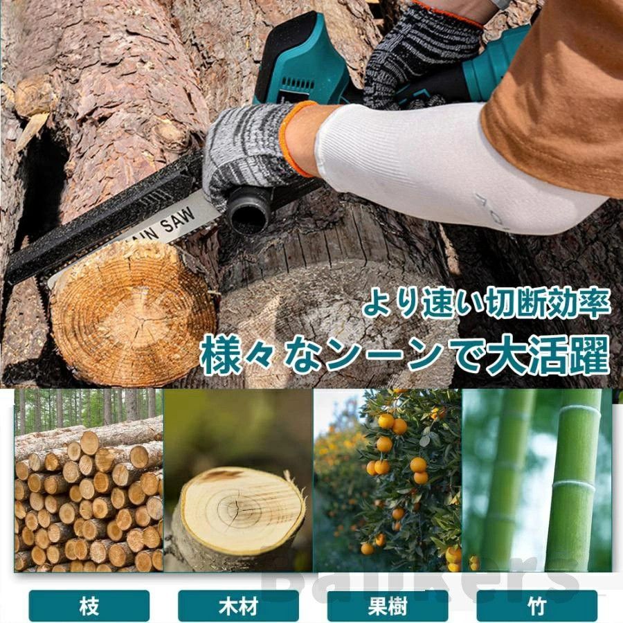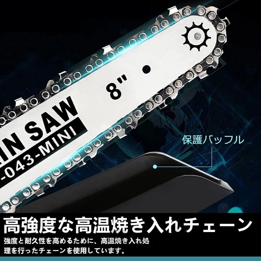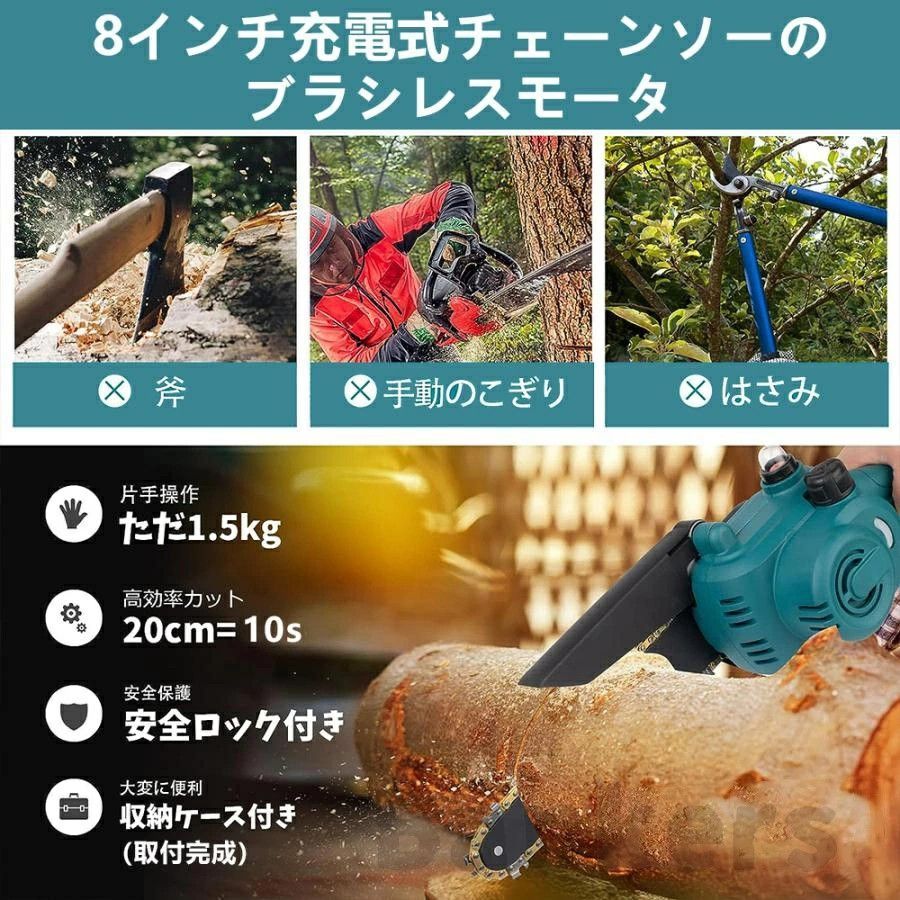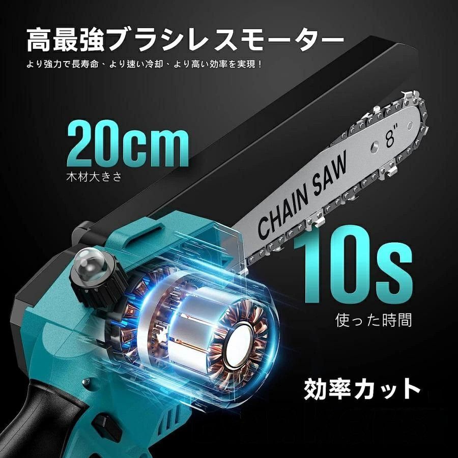 弊店の8インチ充電式ミニチェーンソーはブラシレスモーター設計を採用しており、より強力で長寿命、より速い冷却、より高い効率を実現しています。ガイドバー8インチになり、最大の切断経20cmに達します。注:切削効率は木材の体積と硬度によって異なります。