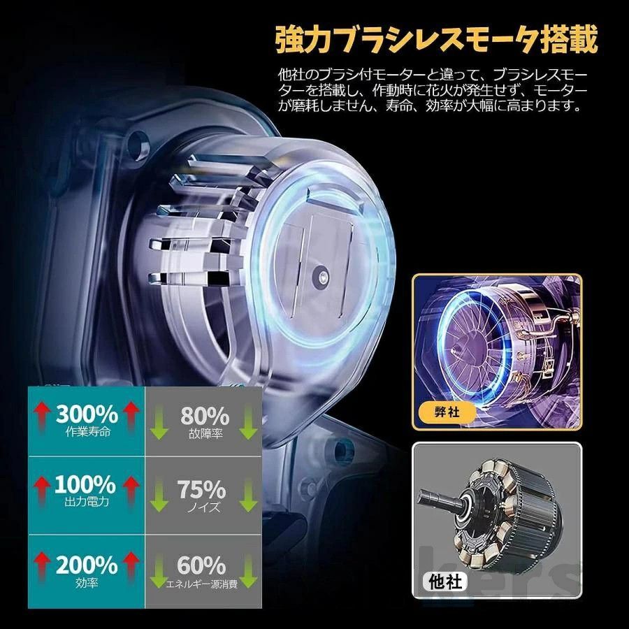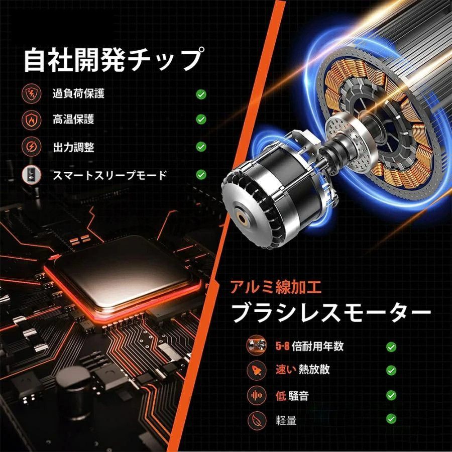 お客様の声から、1.5Ahの大容量バッテリーを採用し、他のバッテリーに比べて使用時間が2倍になり、高速で効率的な作業を十分に体感していただけるようになりました。 本製品はバッテリーの残量を表示することができるので、バッテリーの使用状況がわかりやすくなっています。また、2時間ぐらいぐらいで充電が可能で、フル充電後20分以上通常使用することができます。バッテリーは過熱保護、過電流保護、過電圧保護など必要な安全機能を備えているので、安心して使用できます。