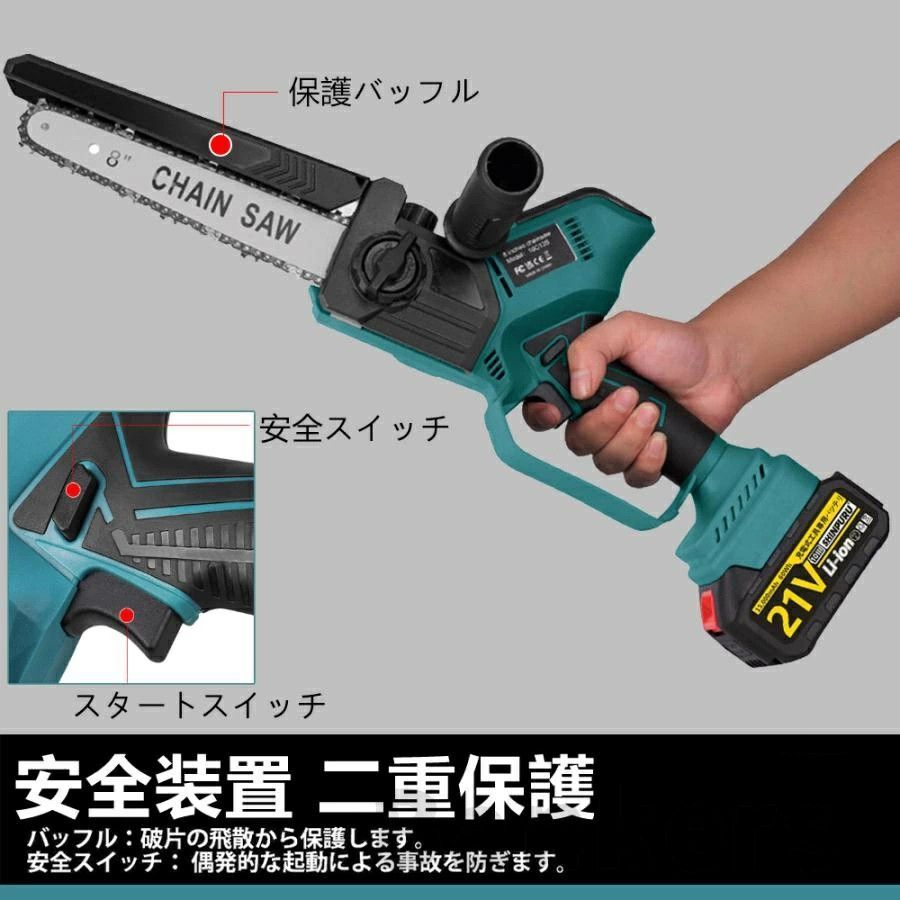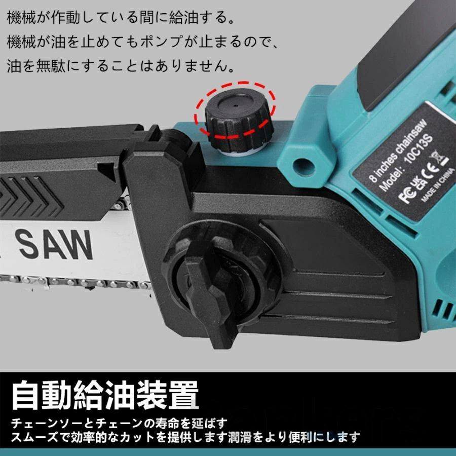 給油機能を搭載、よりスムーズで効率的な切断を提供します。高品質チェーンの切れスピードは約6m/sです。約20cmまでの木材に手軽に使えます。切断力は良いので、作業効率を向上できます。重さはわずか1.3kgの軽量で小型で持ち運びが簡単で、20cm以内の丸太をカットするできる8インチ 電動チェーンソーは女性でも簡単にに操作・使用できて、長時間の作業でも疲れません。