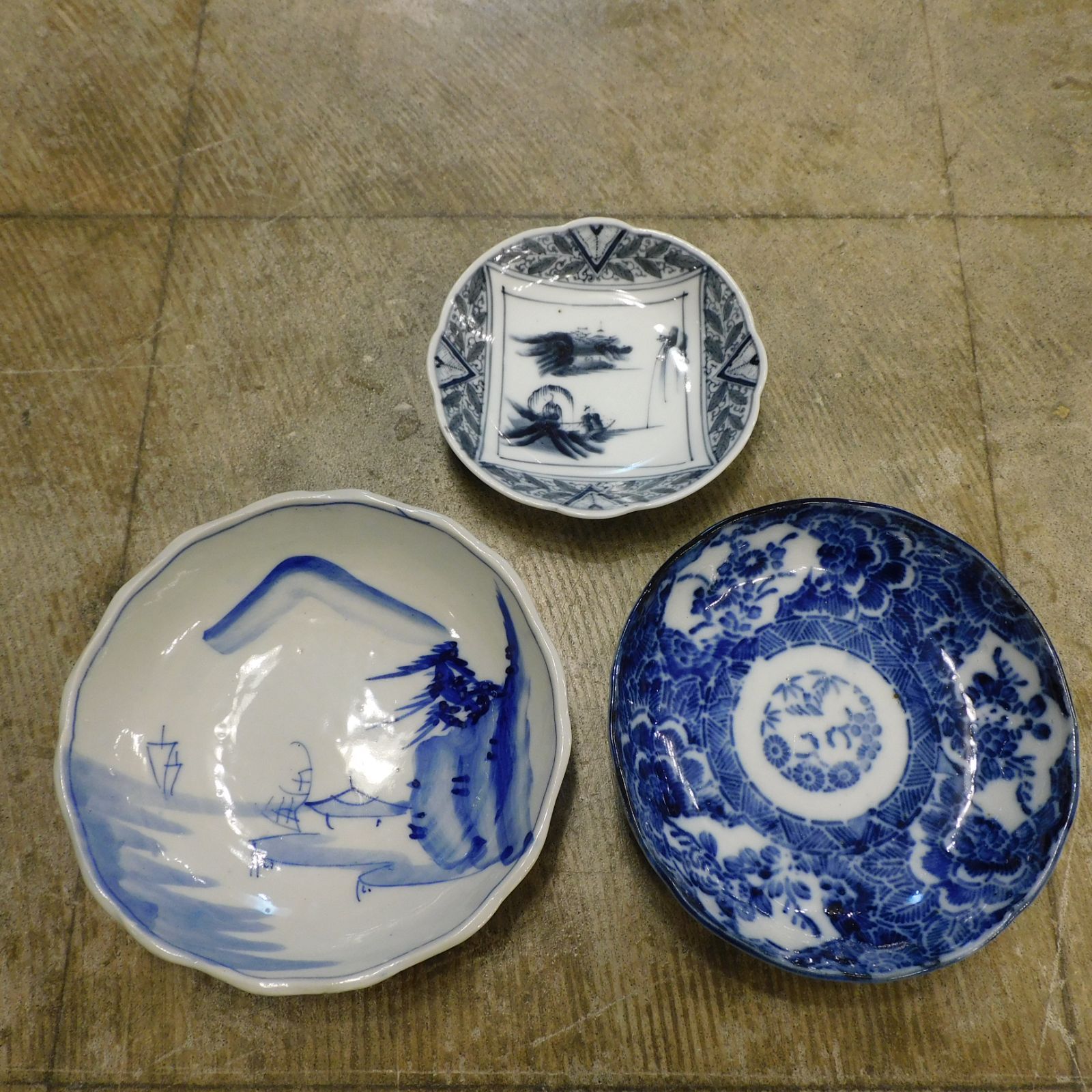 骨董 小皿 なます皿 まとめ売り 3枚 M-00582 / 赤絵 印判皿 染付皿 和皿 伊万里焼 有田焼 古道具 アソート まとめて