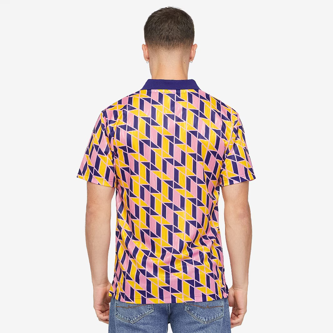 スコットランド代表が5大会連続のワールドカップ出場を果たした際に制作されたこのシャツは、当時のトレンドを反映した非常に鮮やかで独創的なパターンが特徴です。ブラジル代表との激闘など、スコットランドサッカー史に残る瞬間を象徴する一着です。