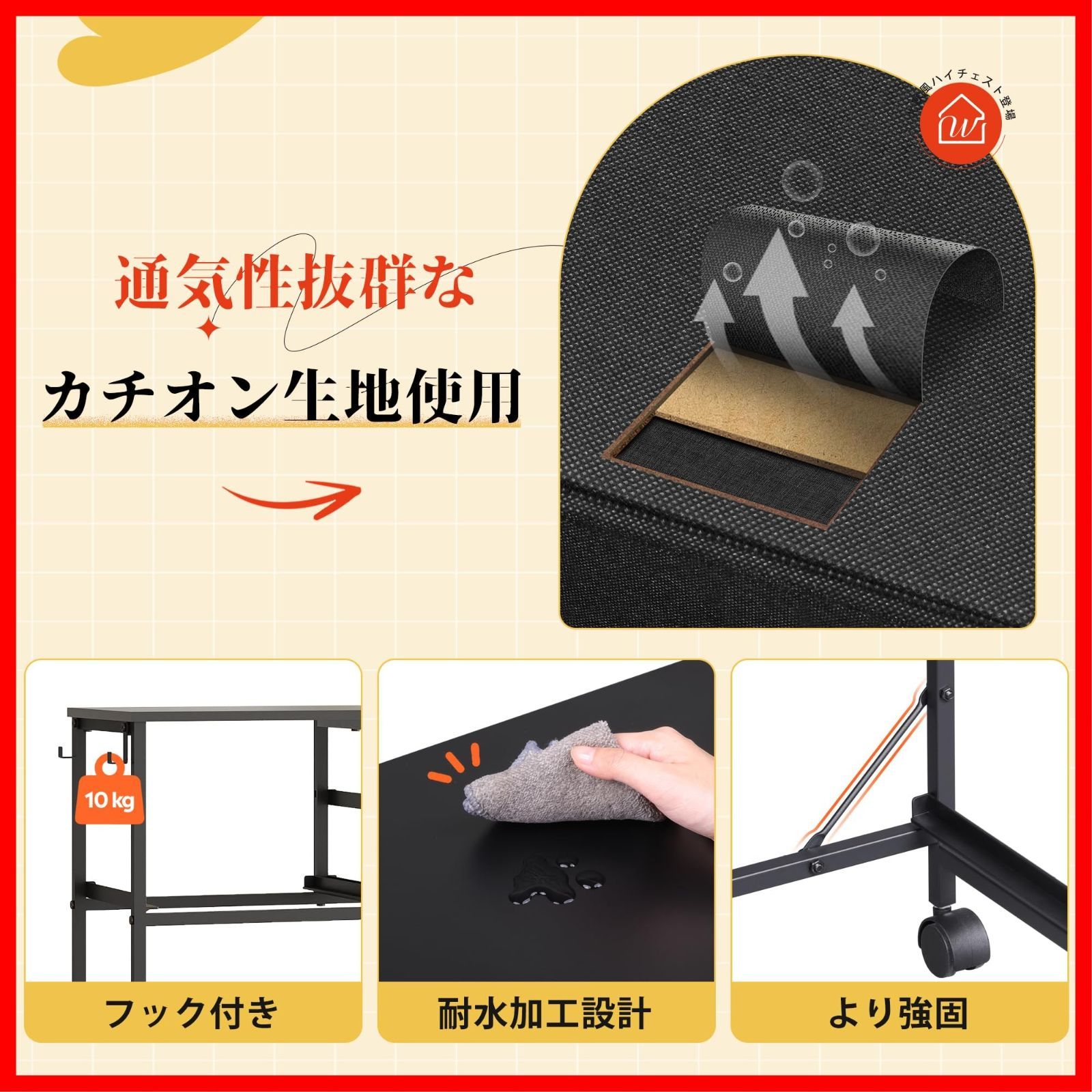 4.頑丈構造&耐久性高い: スチールフレーム構造により、製品はより頑丈になり、長期間使用できます。天板は30kgの重量を支えることができます。各引き出しは2.5kgまで耐えることができ、サイドポケットの総耐荷重は10kg、フックの耐荷重は10kgです。天板はエンボス加工の木製材料を使用し、キズ付きにくく、耐水性に優れています。引き出し面には通気性抜群なカチオン生地使用しております。質感のある取っ手は使いやすく、引っ張りやすいデザインです。