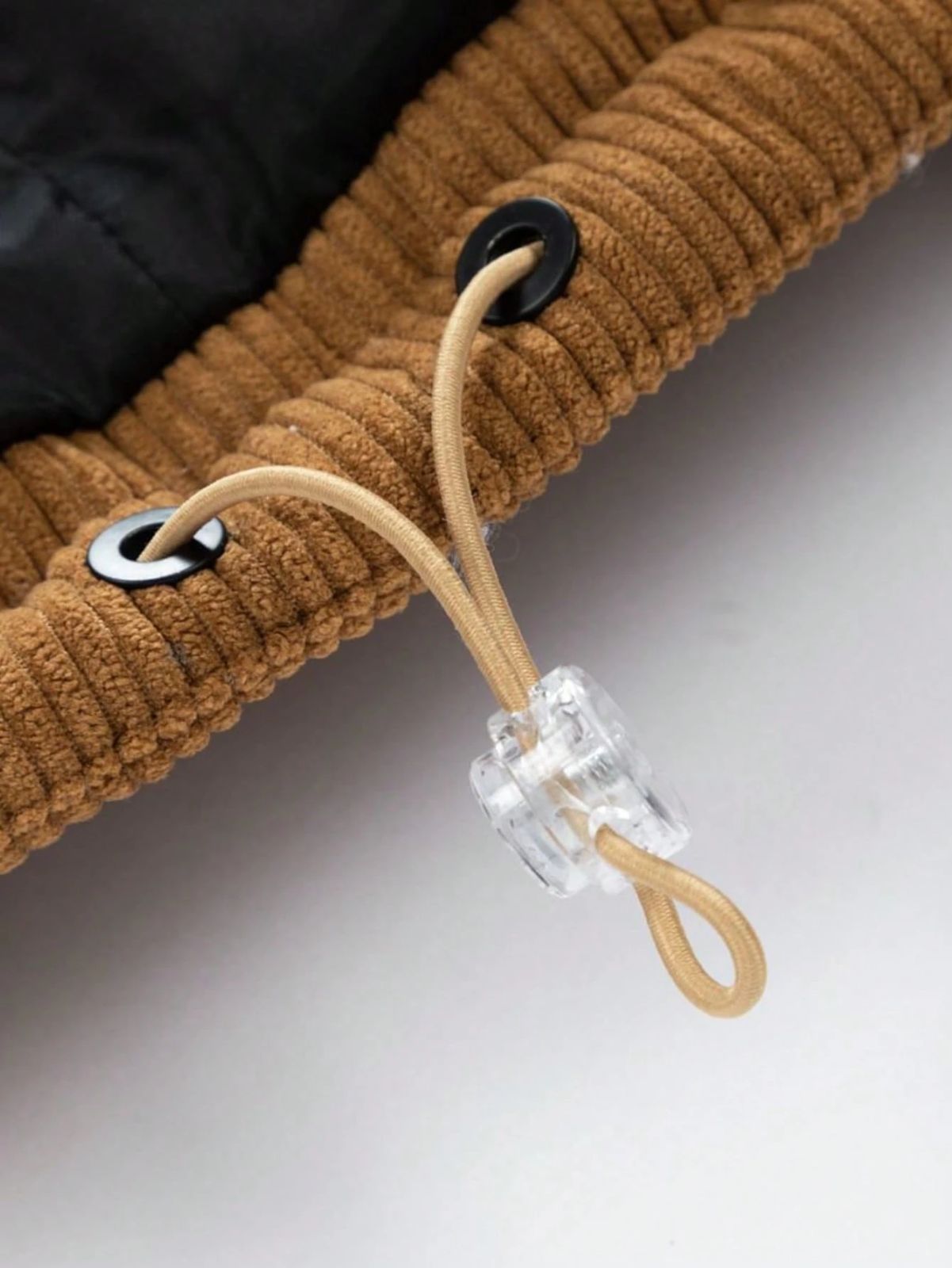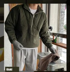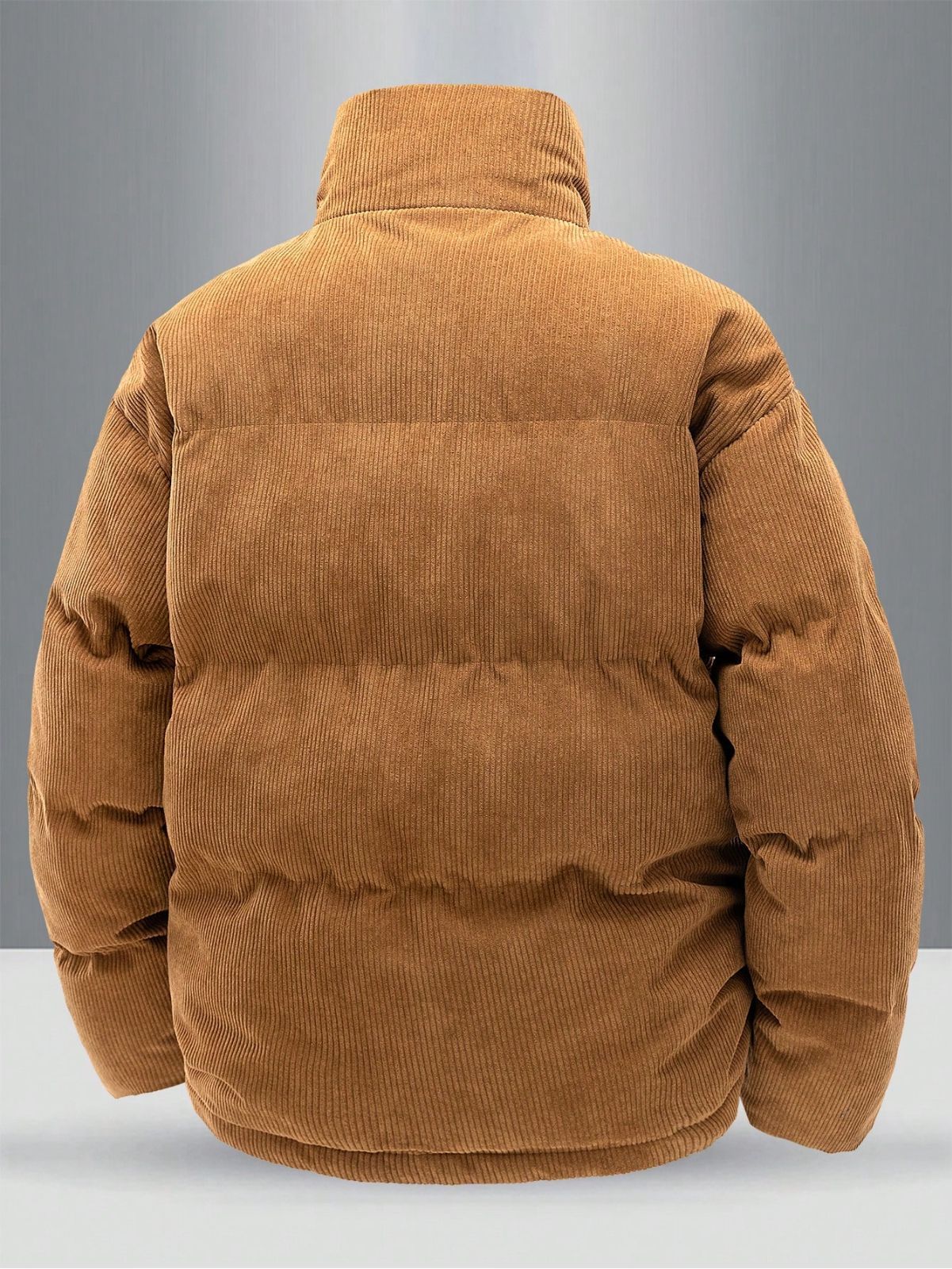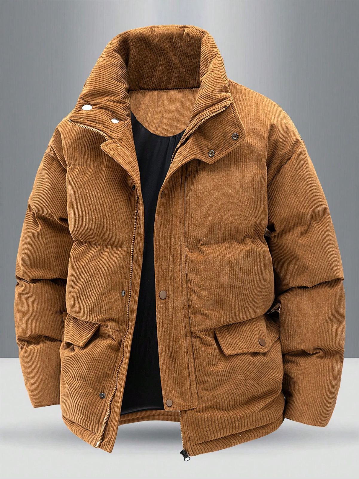メンズ冬ファッション レトロコーデュロイ 大きなポケット ジッパー スナップボタン ダブルプラケット エラスティックカフス 調整可能な絞り紐裾 中綿入り 厚手 ルーズ カジュアル スタンドカラー中綿コート、秋