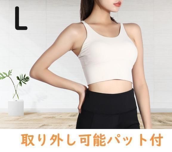 アイボリーLサイズ ヨガウェア タンクトップ ブラトップス スポーツブラ