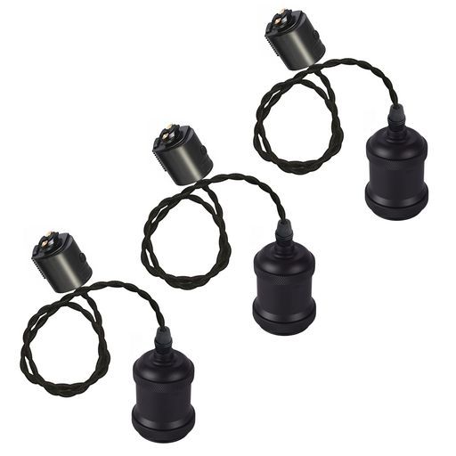 SKIVTGLAMPダクトレール用ペンダントライト北欧黒いコード30cm(3個セット)レールスポットライト3灯工事不要E26口金ソケットレトロ和風led対応セラミックソケット陶製ブラックソケット調光対…