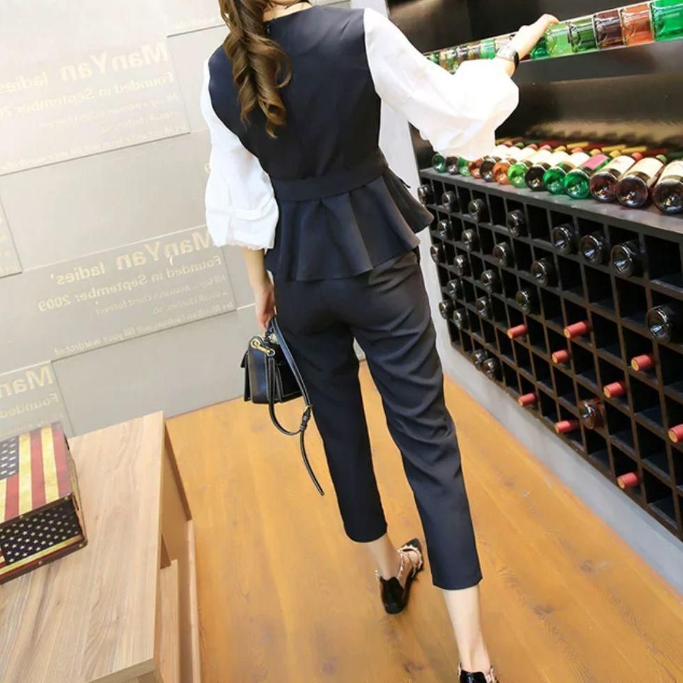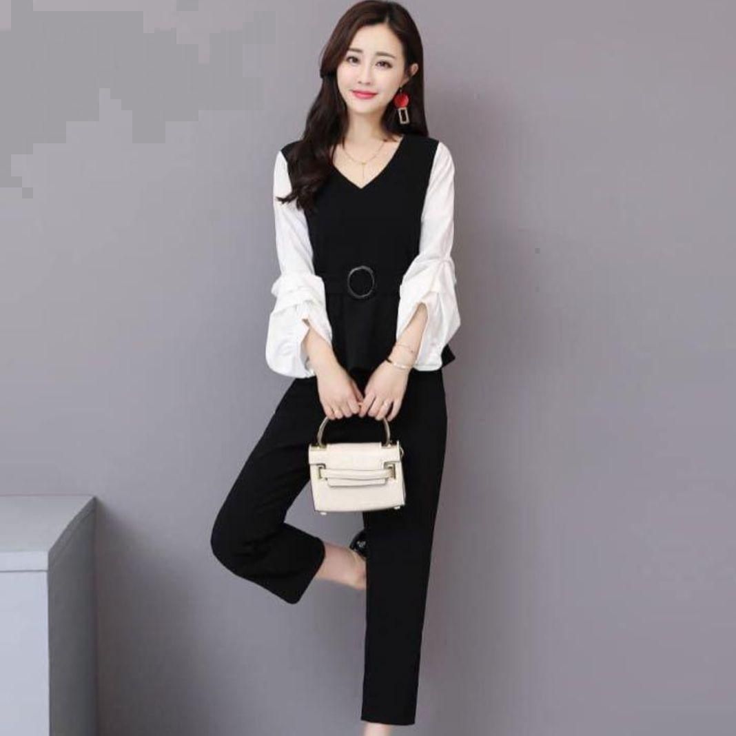 大人気♡袖フリルのトップスにパンツ、ベルトの3点セットです!
