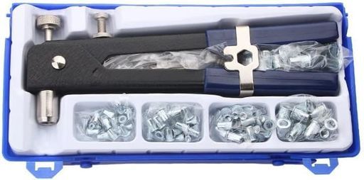 【パッケージ内容】1個ハンドリベッター本体、5種類のM3M4M5M6M8式シャフト、20個M3ネジ式リベットナットインサート、20個M4ネジ式リベットナットインサート、20個M5ネジ式リベットナットインサート、10個M6ネジ式リベットナットインサート、10個M8ネジ式リベットナットインサート、1個プラスチック収納ケース。