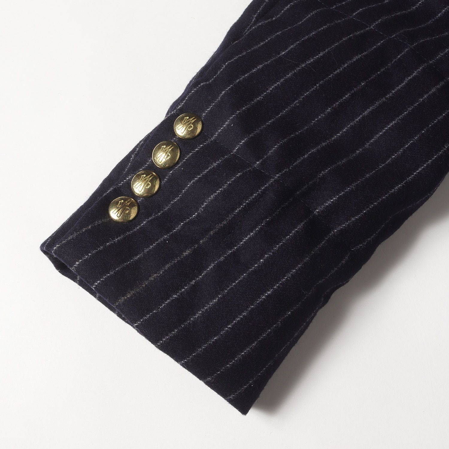トムブラウンをデザイナーとした人気コレクション「MONCLER GAMME BLEU」です。素材違い、柄違いのチェック生地を組み合わせたダウンテーラードジャケットです。裏地はお馴染みのストライプコットン生地を採用しています。ロゴ刻印入りの金ボタンがポイントです。