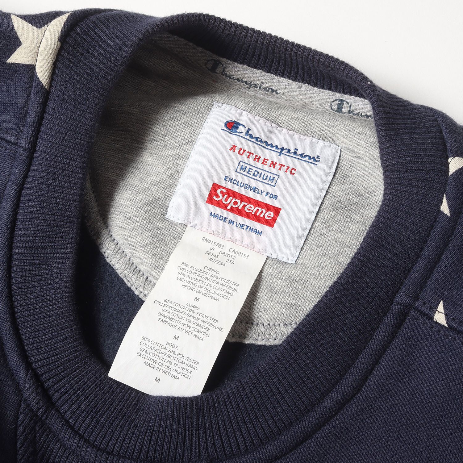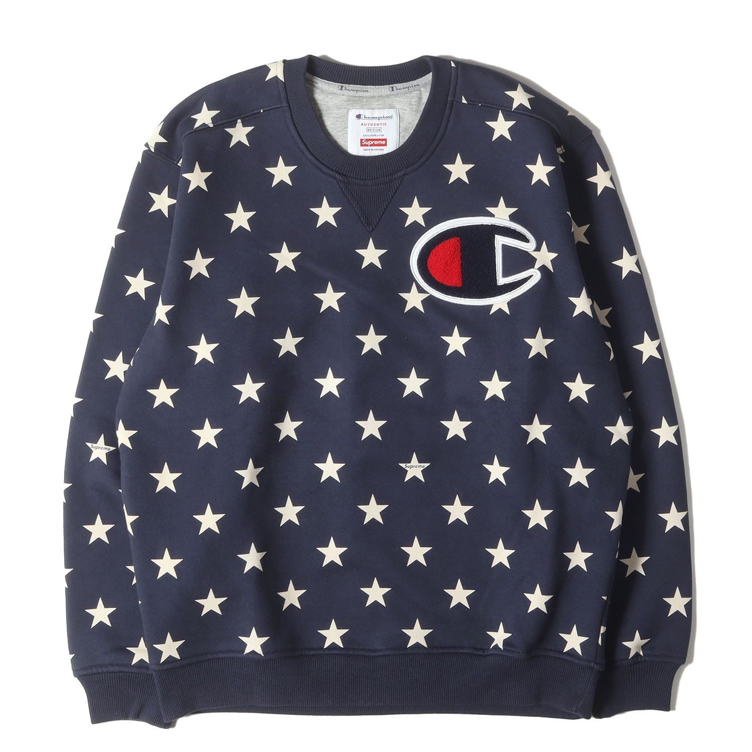毎期定番の“Champion(チャンピオン)”とのコラボシリーズになります。こちらはスター柄プリントをあしらったクルーネック裏地起毛スウェットです。
