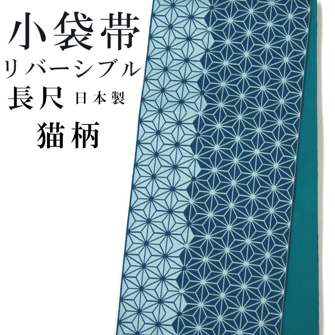 新品 猫柄 麻の葉柄 半巾帯 小袋帯 長尺 リバーシブル 浴衣帯 袴下帯 日本製 着物帯 半幅帯 ゆかた 袴 卒業袴 卒業式 05