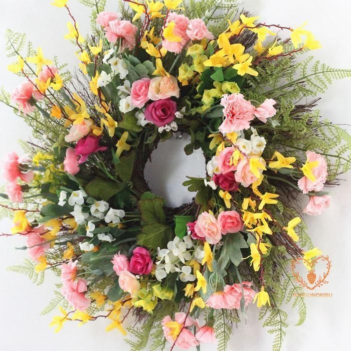 リース 花輪 母の日 ギフト プレゼント 春 リース 玄関飾り 造花 壁掛けフラワー 造花リース 壁掛けフラワー 装飾用 ドアリース 結婚式 パーティー 部屋飾り 撮影道具 贈り物