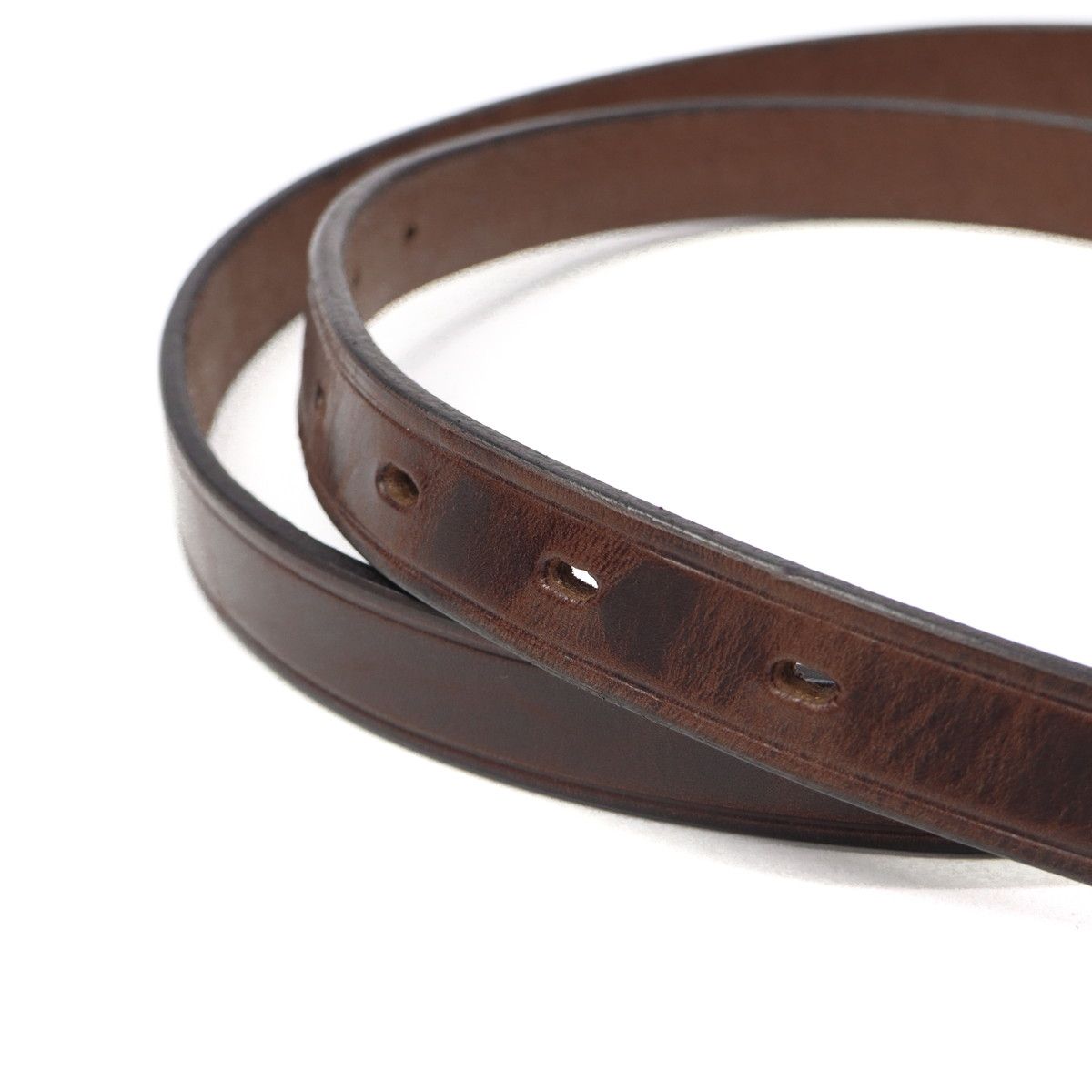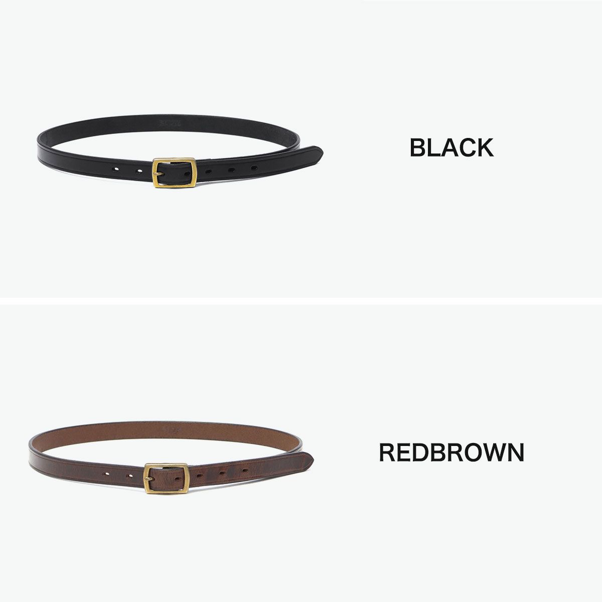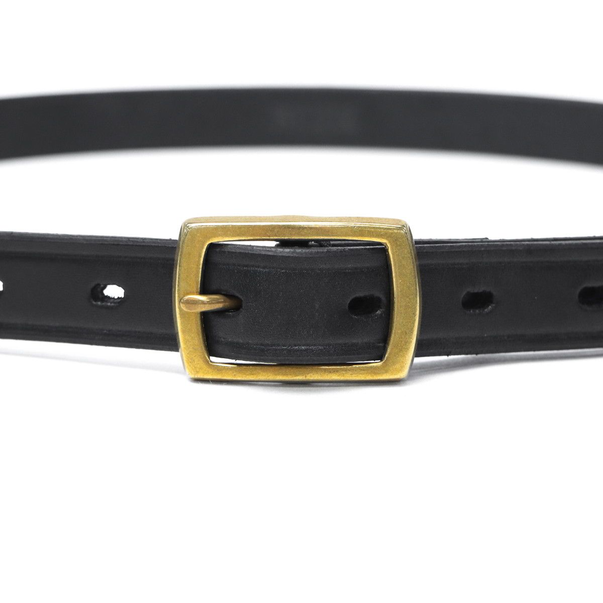 日露戦争後に軍隊の革靴やベルトなど軍事用品向けにスタートした歴史の長いタンナー『山陽社』製のフルベジタブルタンニングレザーを使用。仕上げにロウ引き加工を繰り返し施し、強度と重厚感をプラスしました。華奢なバックルとの組み合わせで上品な印象に仕上げており、太いベルトに抵抗がある方やきれいめなスタイルを好む方、また女性にもおすすめです。細身ながらも、上質なハービーレザーの質感はしっかりと伝わり、シンプルな装いにも程よいアクセントを加えてくれます。