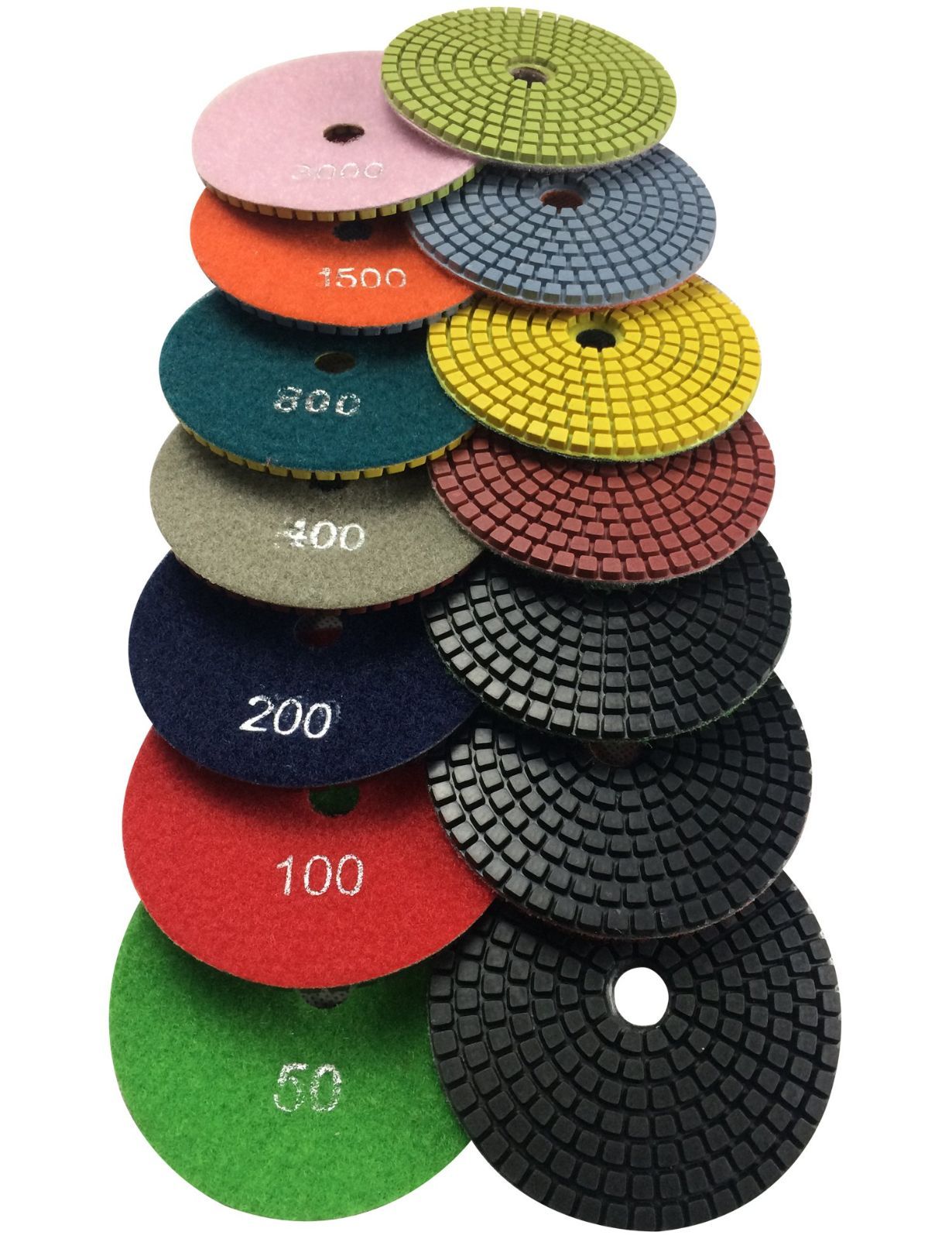 3. パッケージに含まれるもの:7×ダイヤモンド研磨パッド。グリット50, 100, 200, 400, 800, 1500, 3000。
