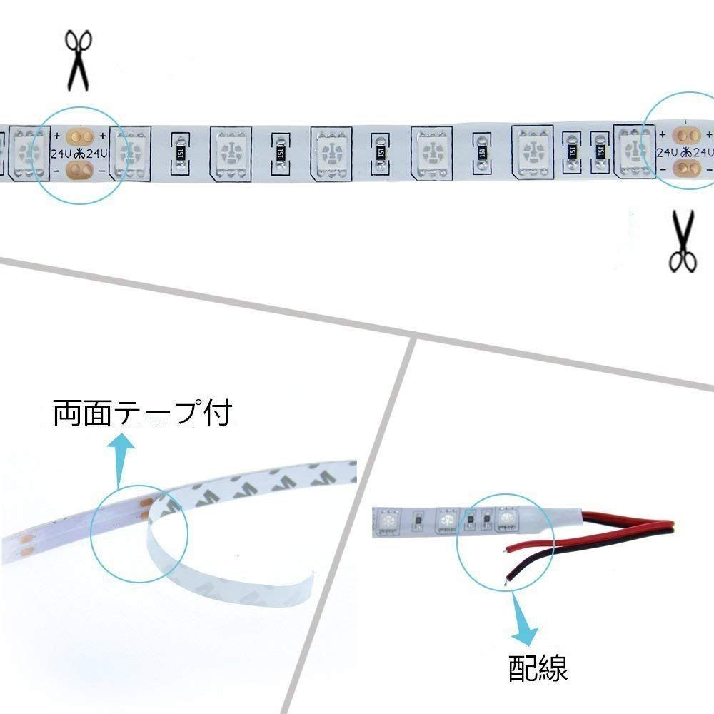 短色 LEDテープライト● 24V 高輝度 5M 300連 防水IP65 切断可能 白ベース/LED 強力粘着両面テープ 正面発光 SMD 5050 (ピンク)