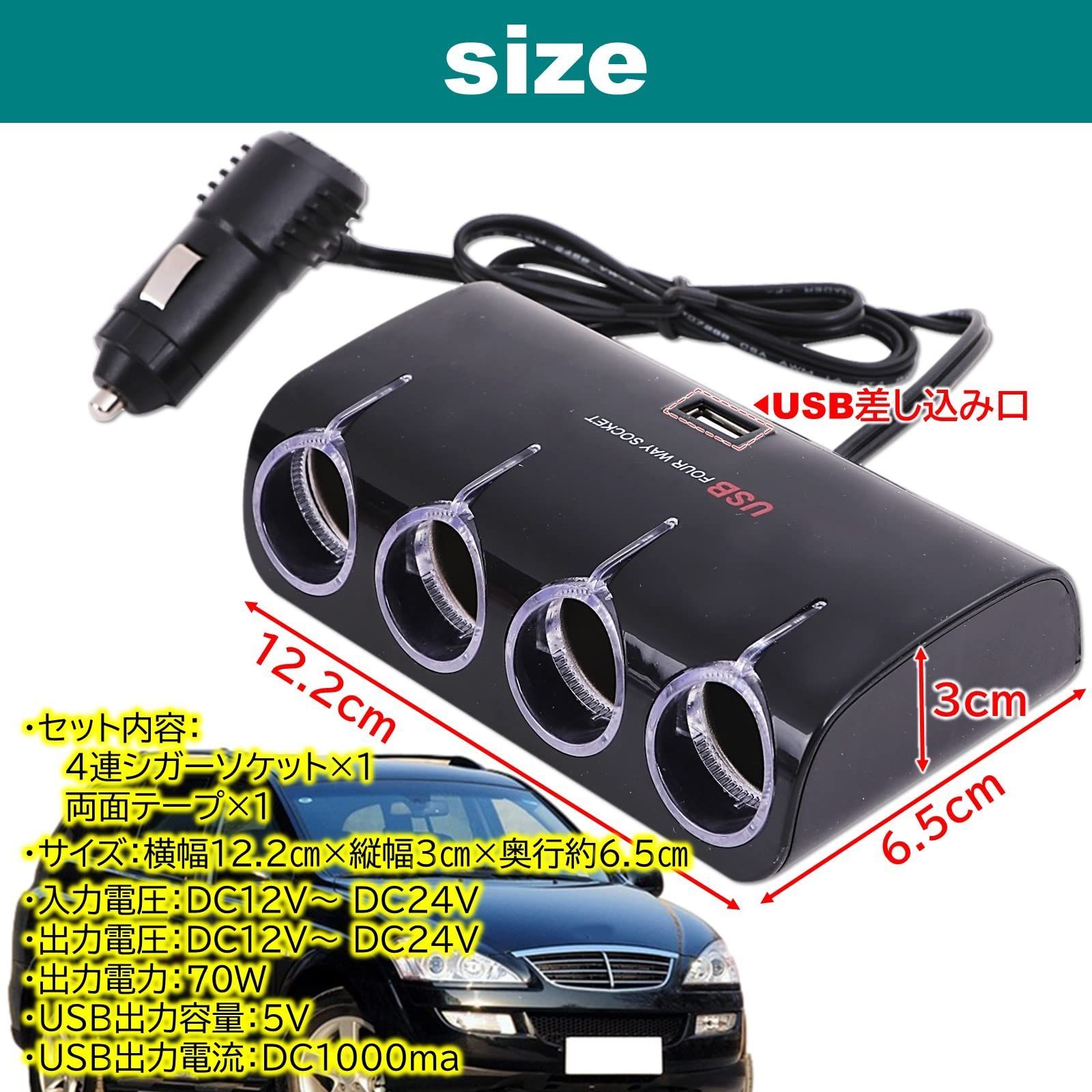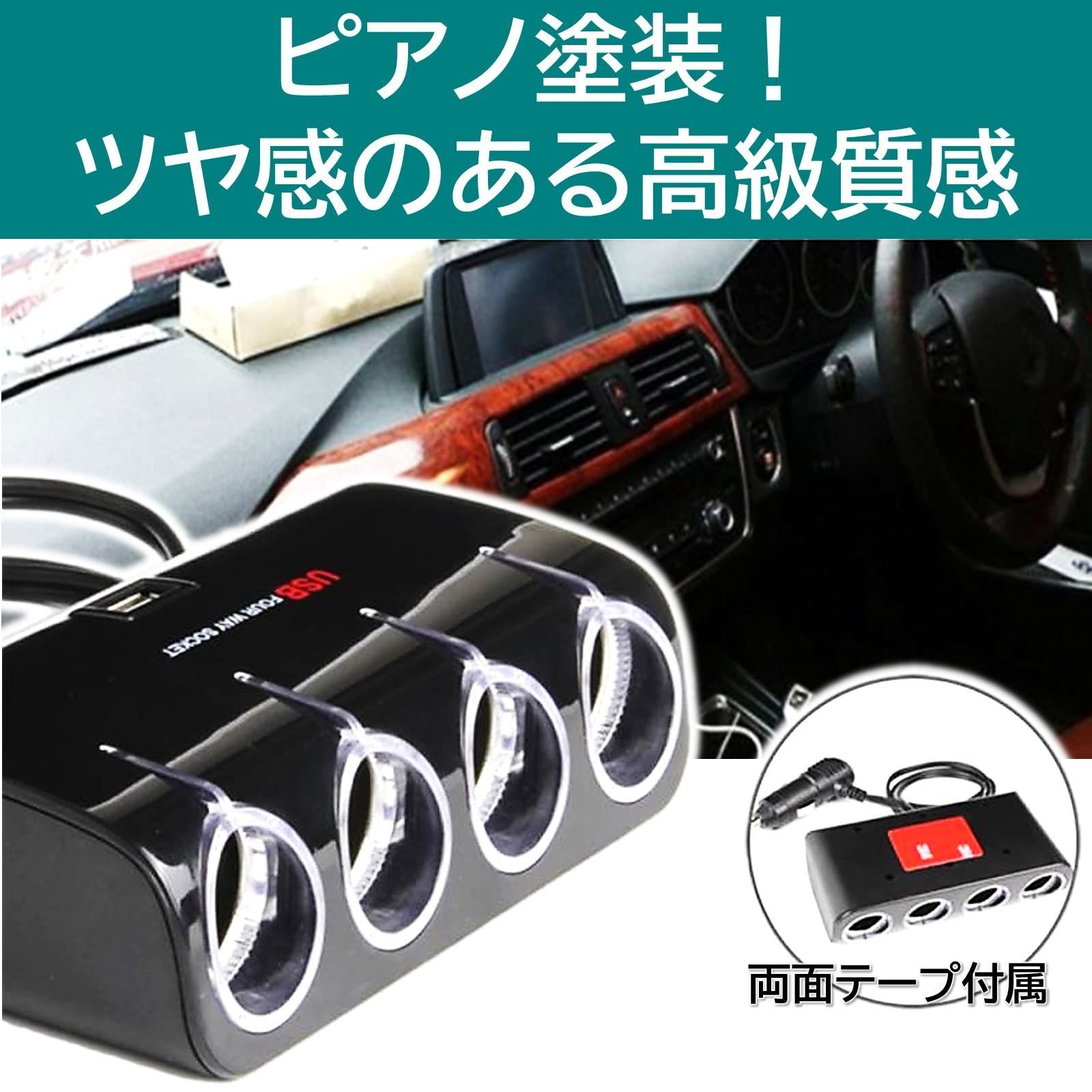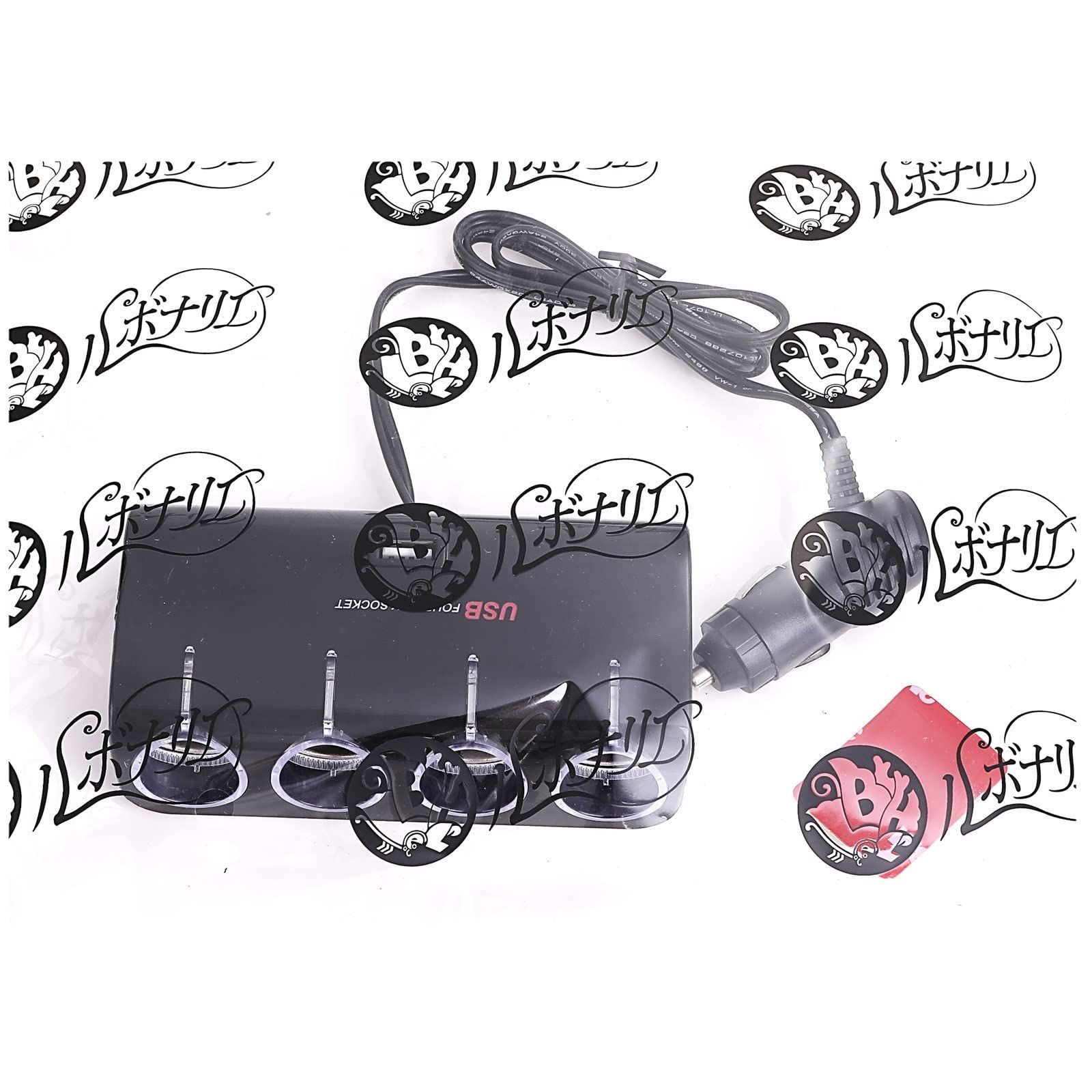ルボナリエ シガーソケット カーチャージャー USBポート LEDライト 4連 (ブラック)