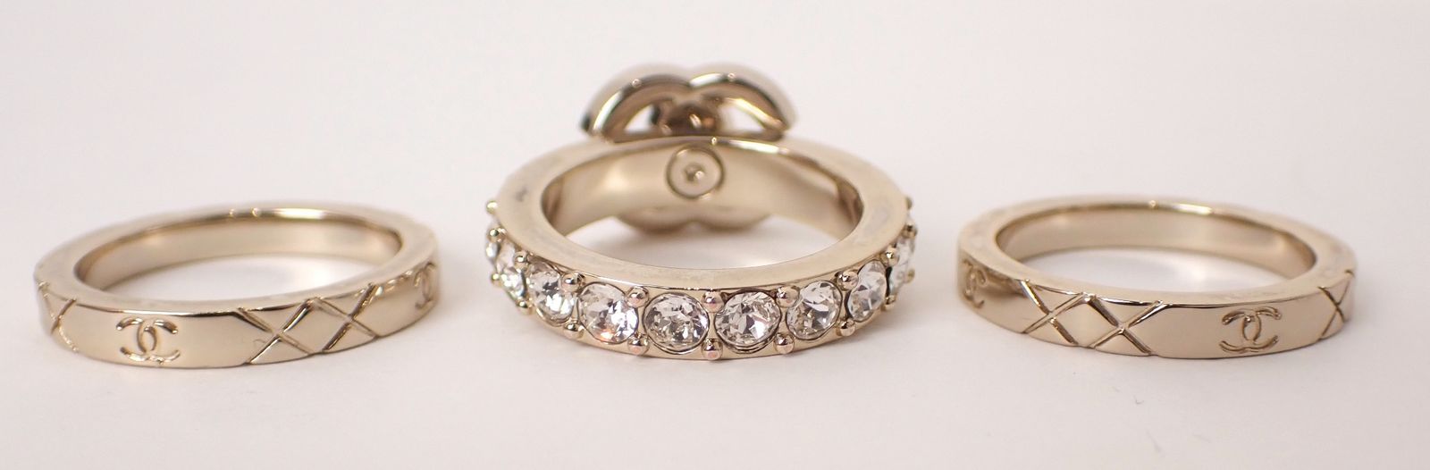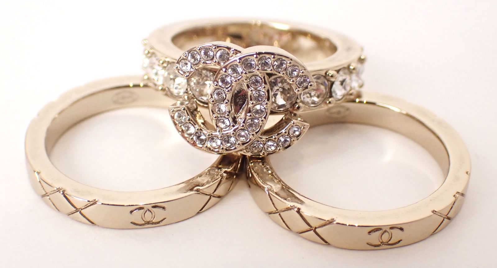 Chanel(シャネル) ココマーク 3連リング CCマーク メタルゴールド シルバー 重ね付け 15号 マトラッセ レディース 指輪