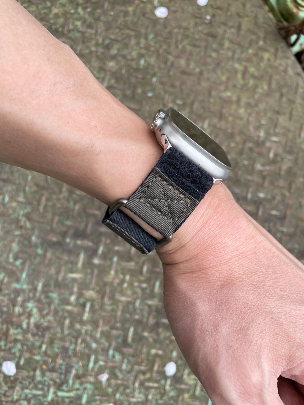 こちらの商品はatelier CODELで製作販売しているアップルウォッチバンド(マジックテープバージョン)の訳アリ品になります。数に限りがありますので、お早めにお求めください。