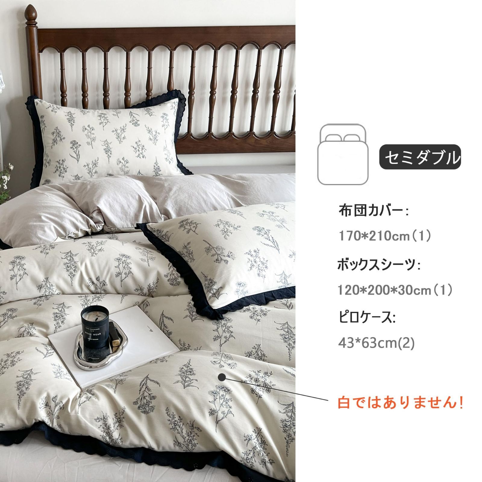 セット内容と仕様:掛け布団カバー(1枚): 170X210cm ボックスシーツ(1枚):120X200+30cm 枕カバー(2枚):43X63cm