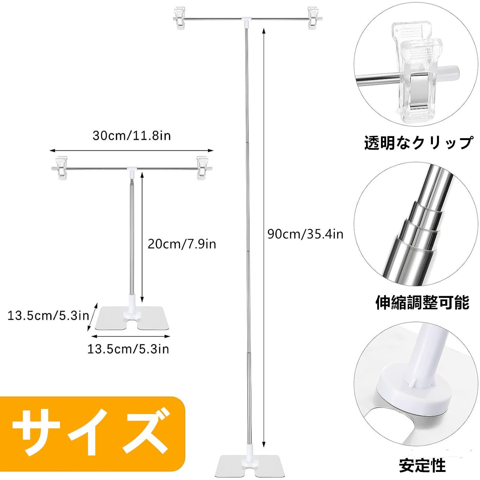 【商品仕様】 高さ20cm~90cm、幅30cm、土台ベースサイズ:幅13.5cm×長さ13.5cm、重量:約260g、パッケージ内容:ポップスタンド*1個