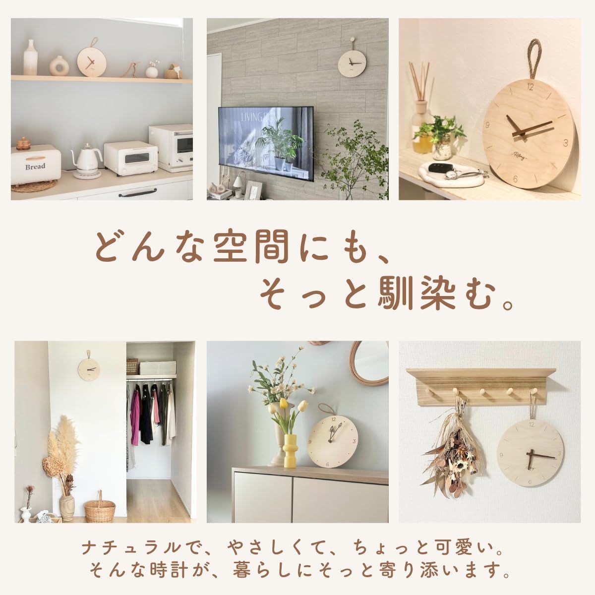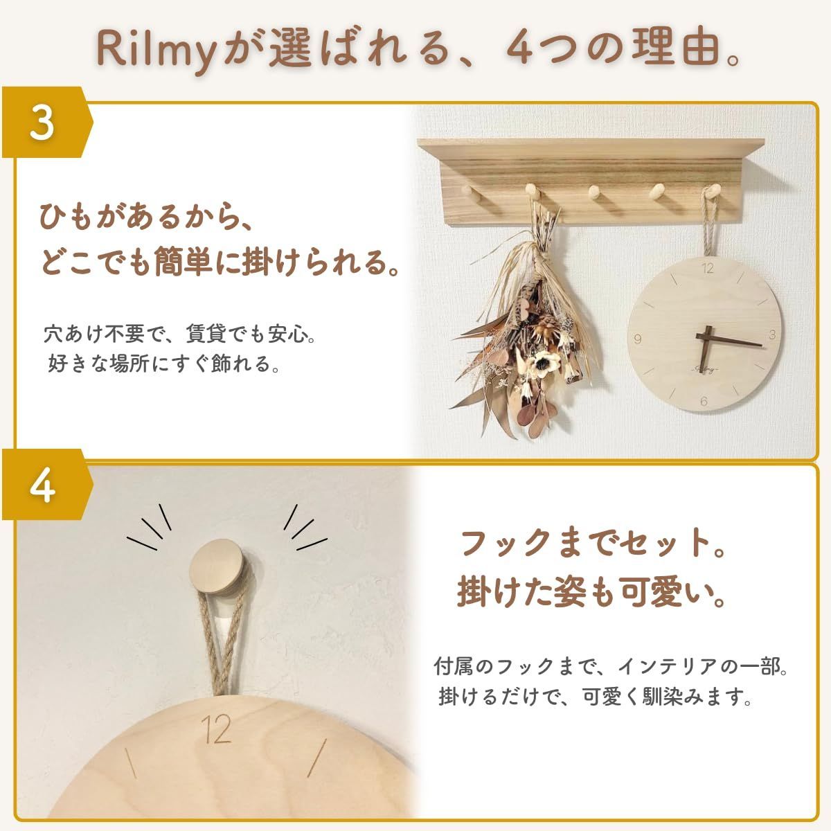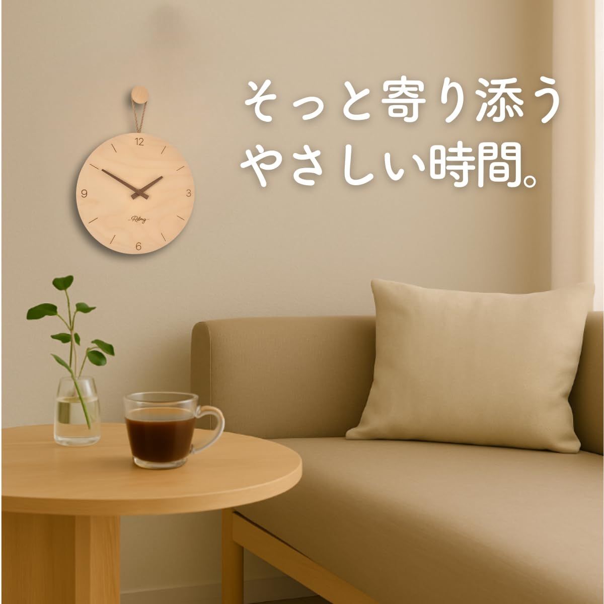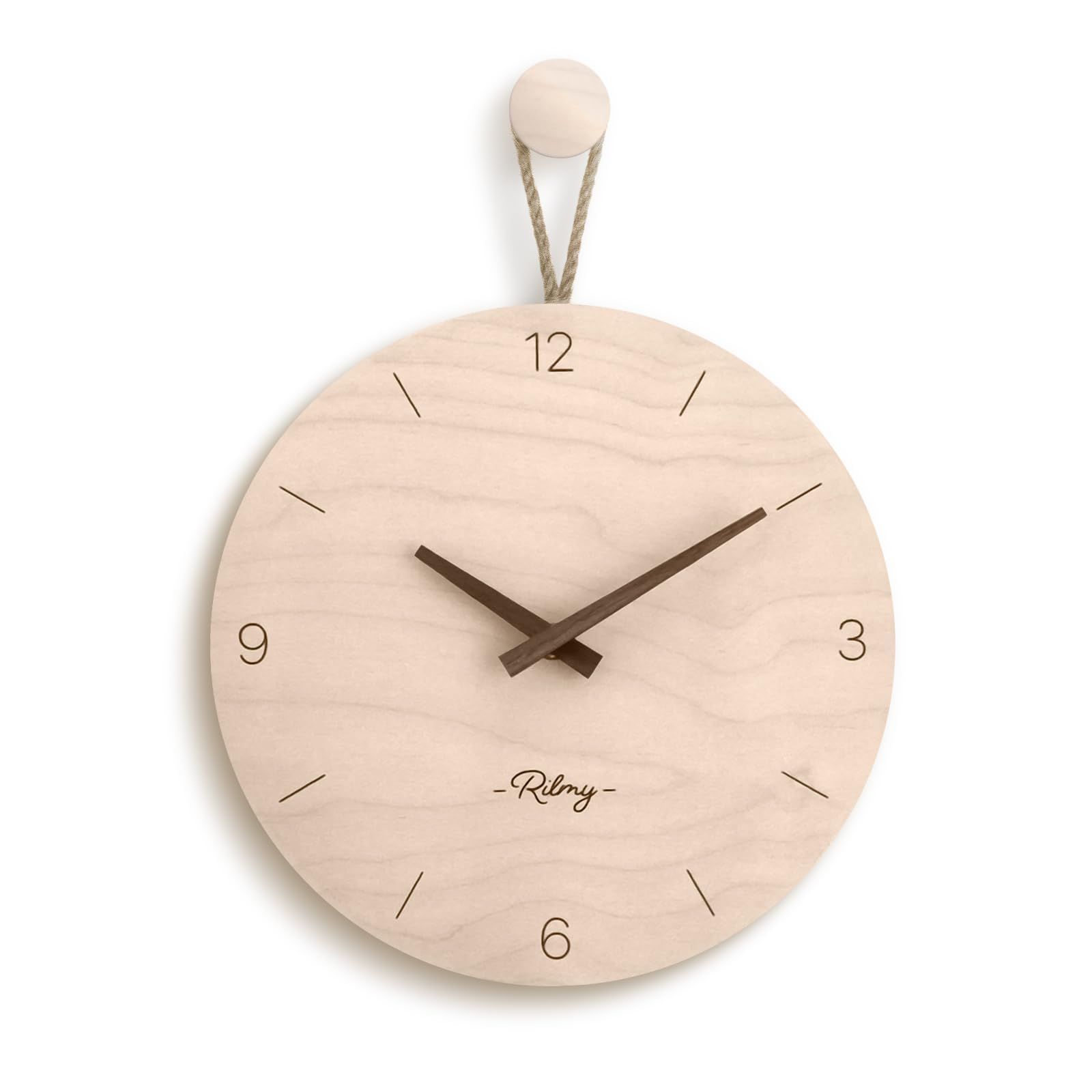 掛け時計 【テレビドラマに採用されました】時計 壁掛け 壁時計 おしゃれ 可愛い 北欧 静音 韓国インテリア ナチュラルインテリア 10インチ 25㎝ 乾電池付き 紐付き ペンダントクロック 無垢材 リルミー (バーラインスタイル)