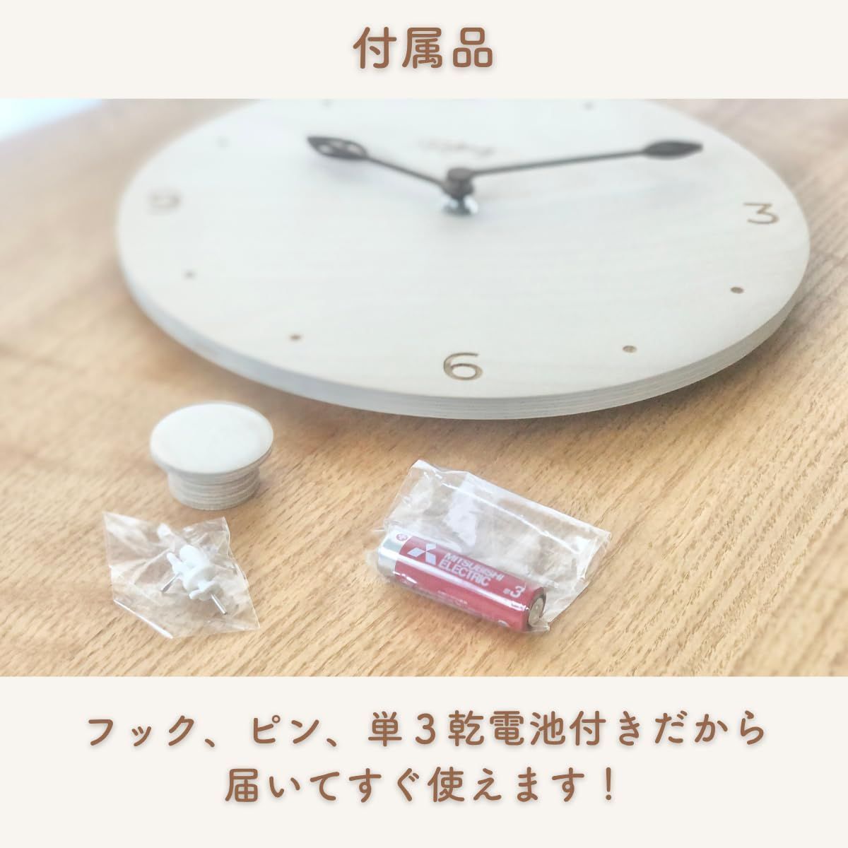 【乾電池付属】単三乾電池が付属している壁時計なので、届いた瞬間からお使いいただけます。