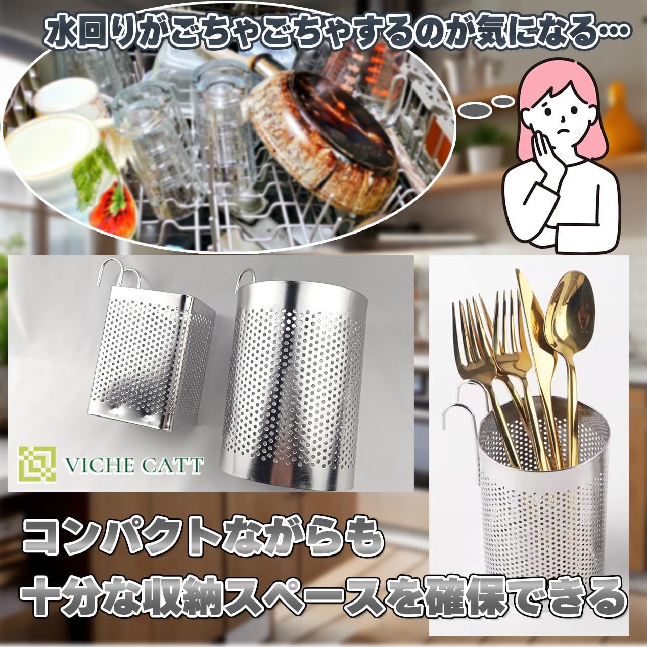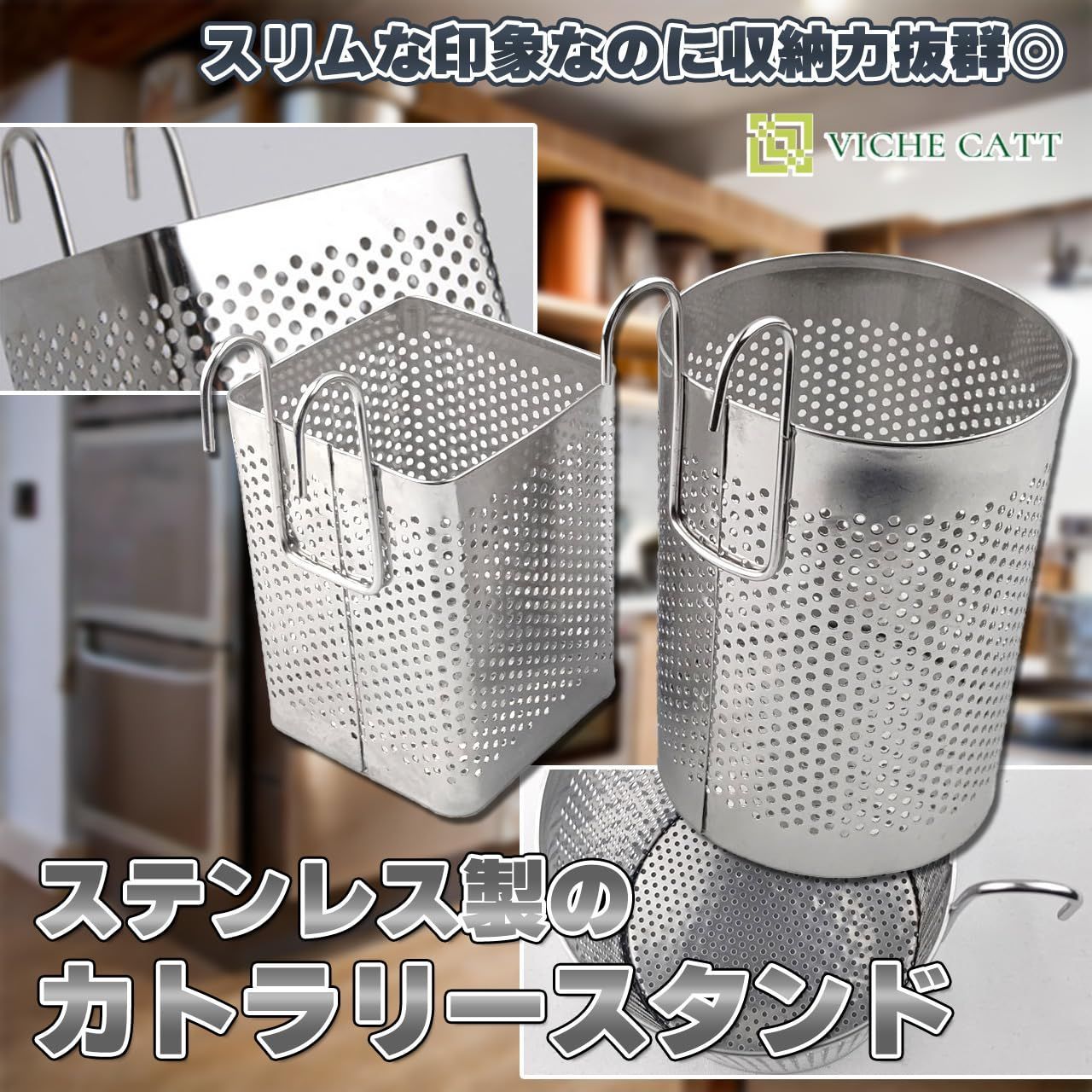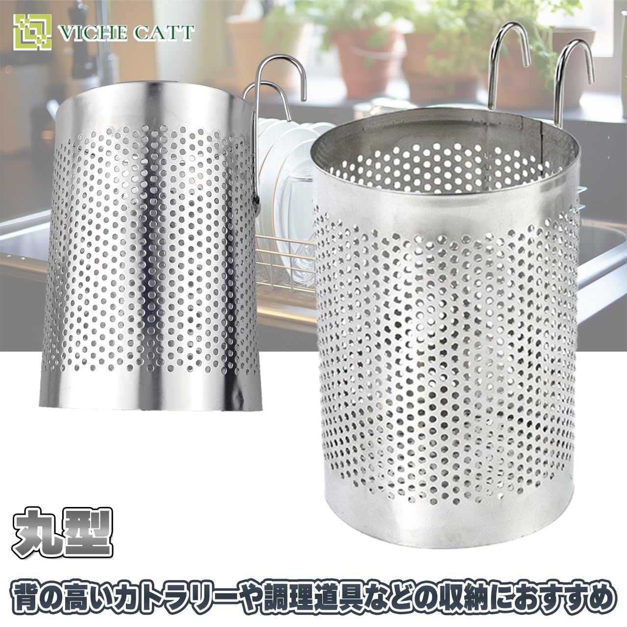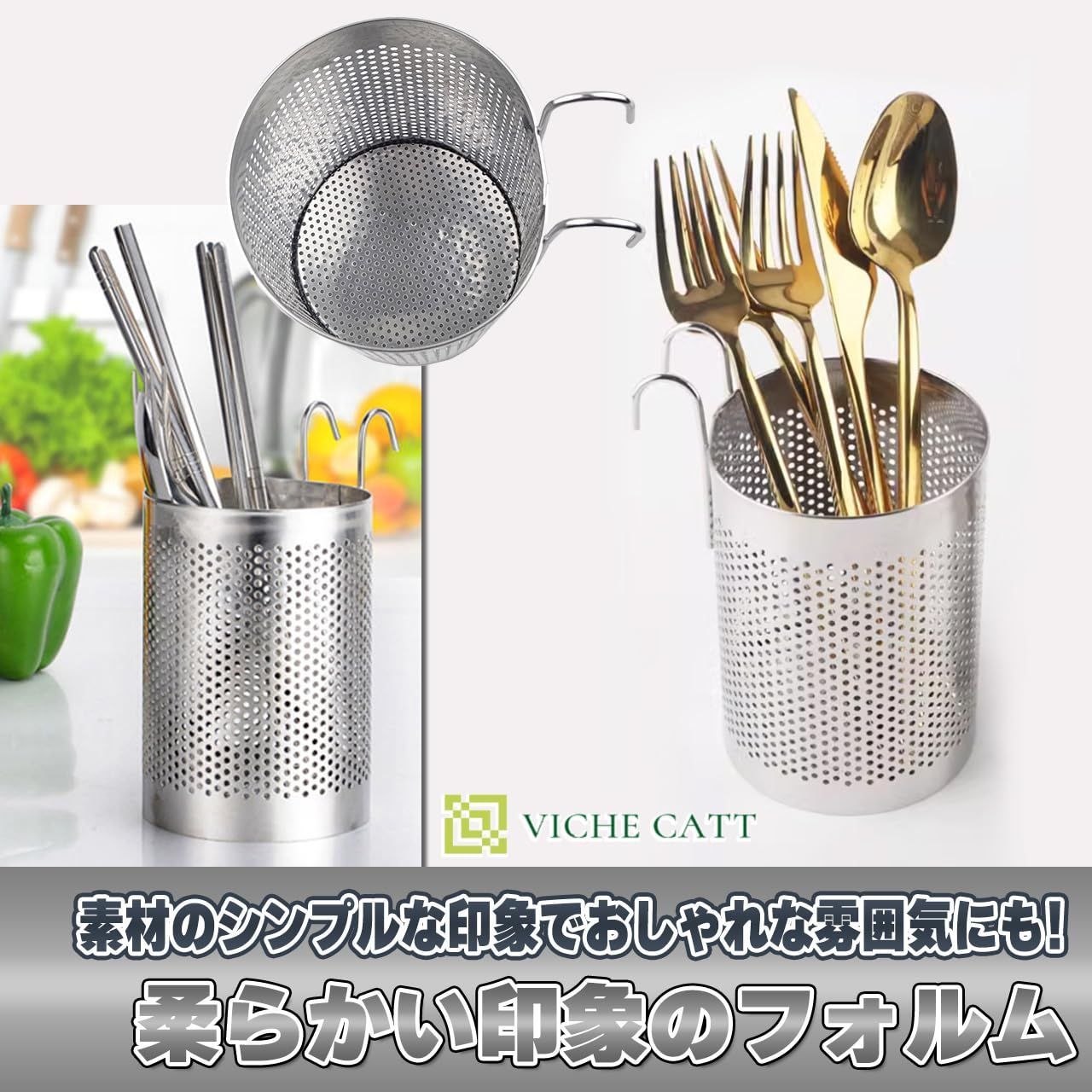 VICHE CATT キッチン用品 箸立て カトラリー スタンド 水切り 箸入れ 箸たて ステンレス (丸型)