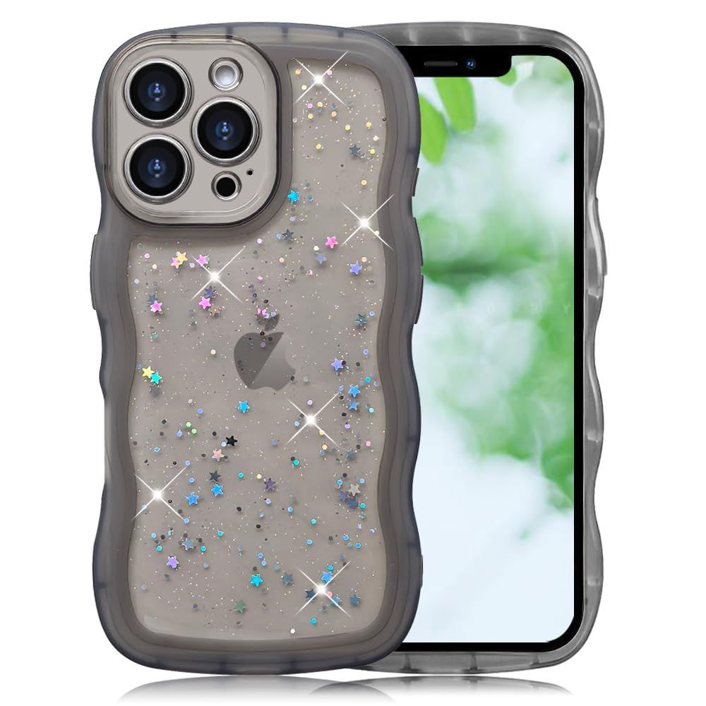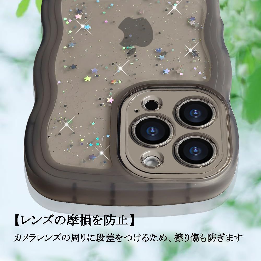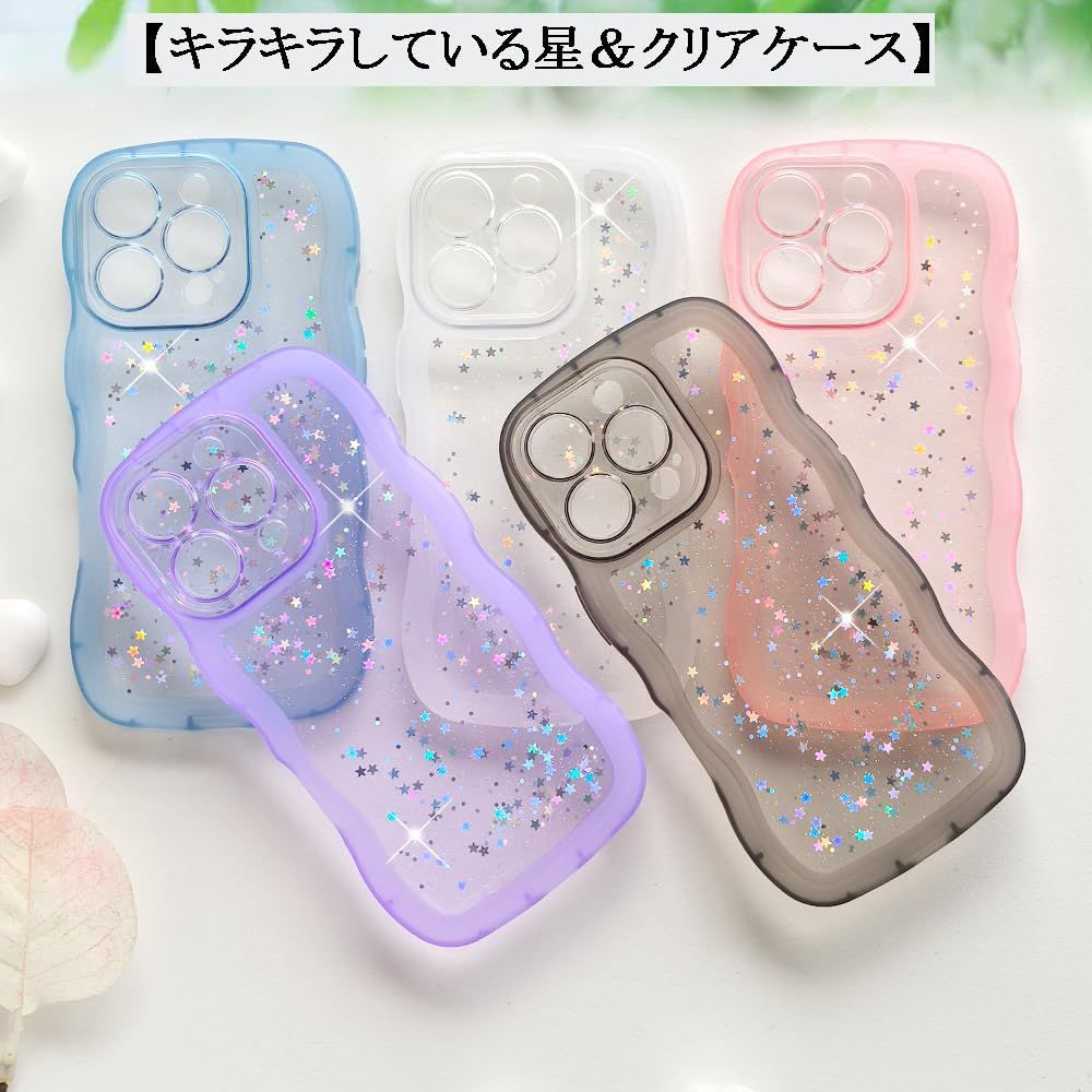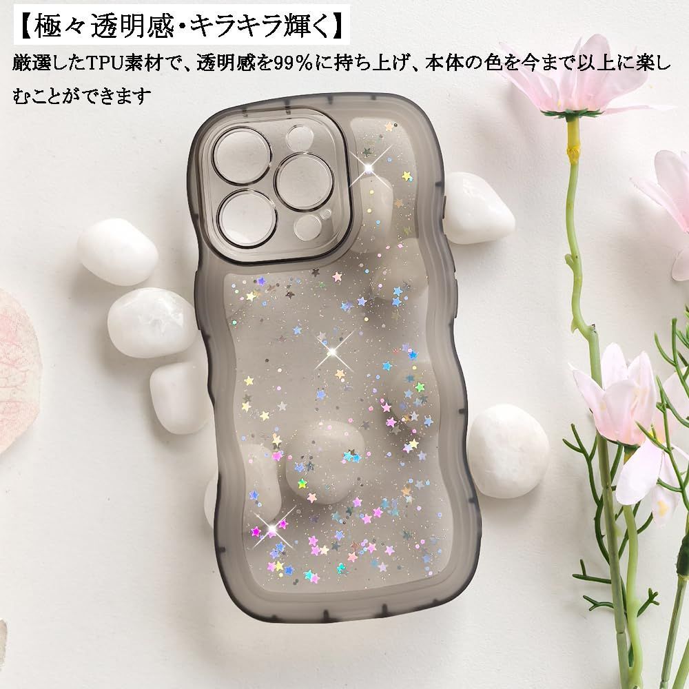 YUYIB スマホケース 対応 クリア キラキラ かわいい tpuソフトケース 波形 薄型 傷防止背面 滑り止め 指紋防止 ストラップホール付き 衝撃吸収 女性人気 携帯電話ケース カバー