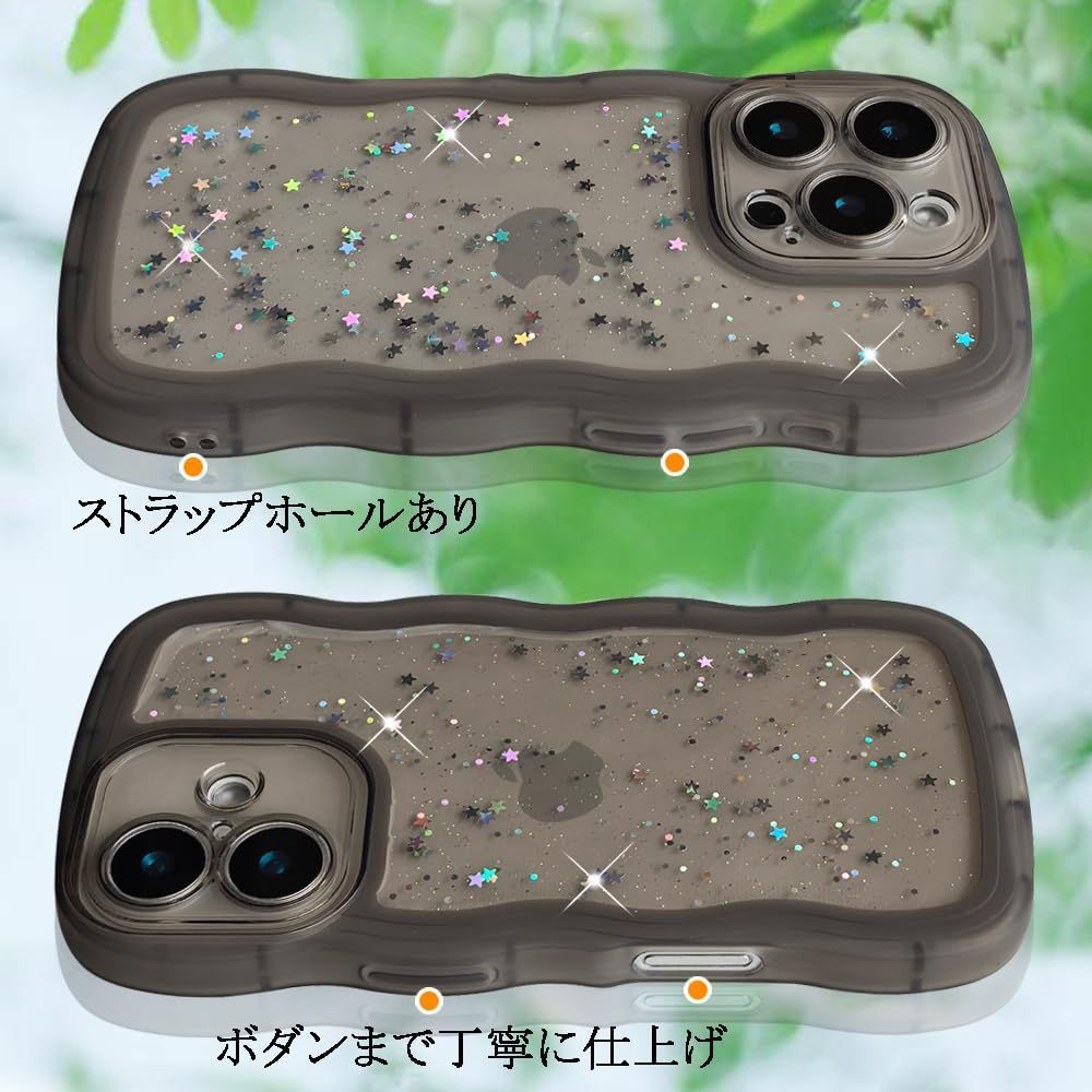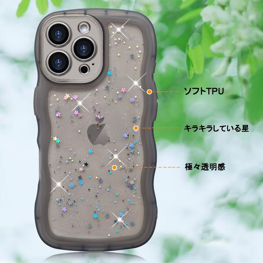 スマホケース 対応 iPhone16 Pro ケース クリア キラキラ かわいい tpuソフトケース 薄型 傷防止背面 滑り止め 指紋防止 ストラップホール付き スマホケース アイホン16プロ カバー (透明黒 16 Pro)