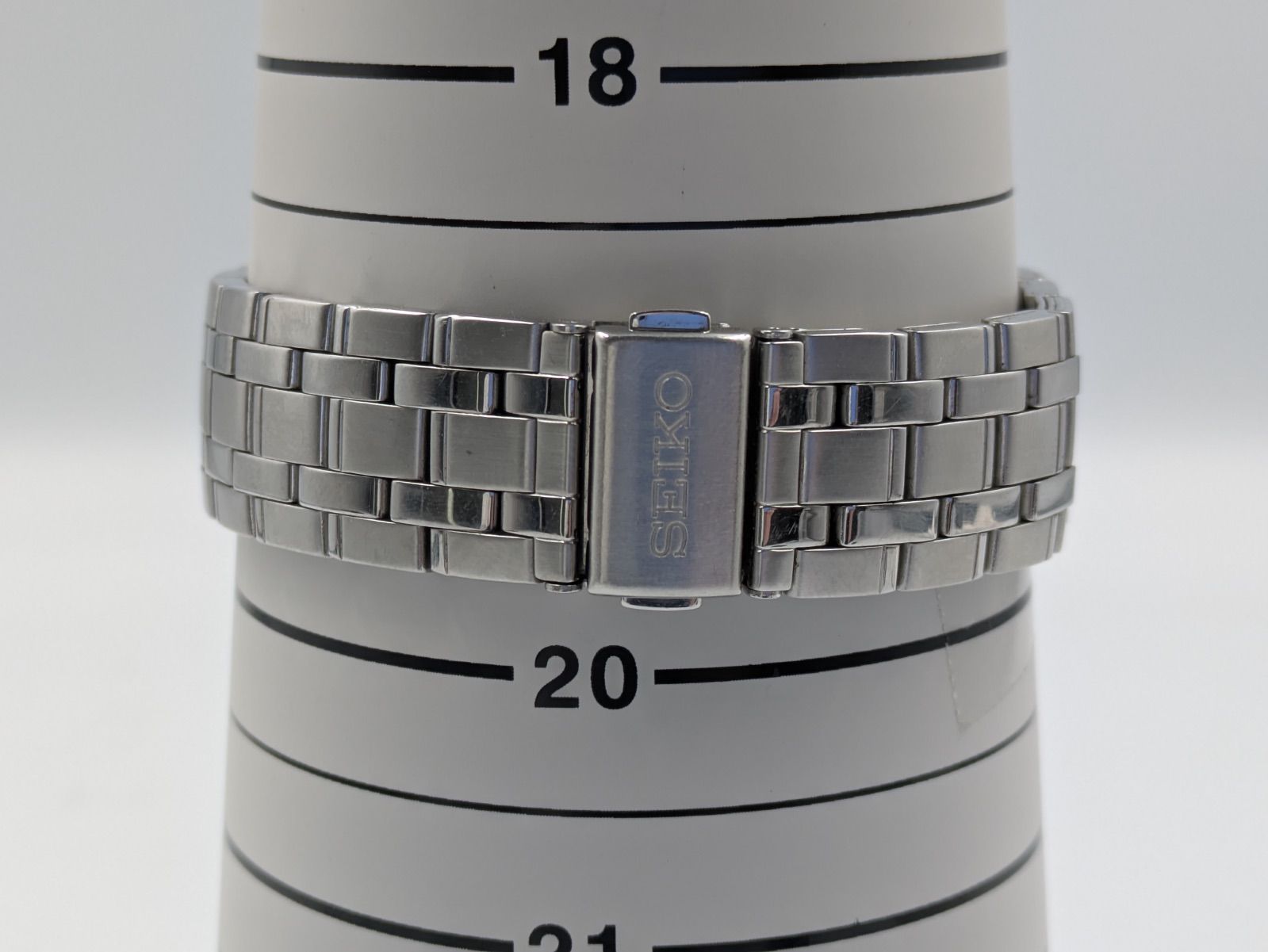 腕周りはメジャー写真より約18〜20cm程度と判断できます。計測方法による誤差はご了承ください。ケースサイズの実測値は画像から正確に判断できないため記載しておりません。