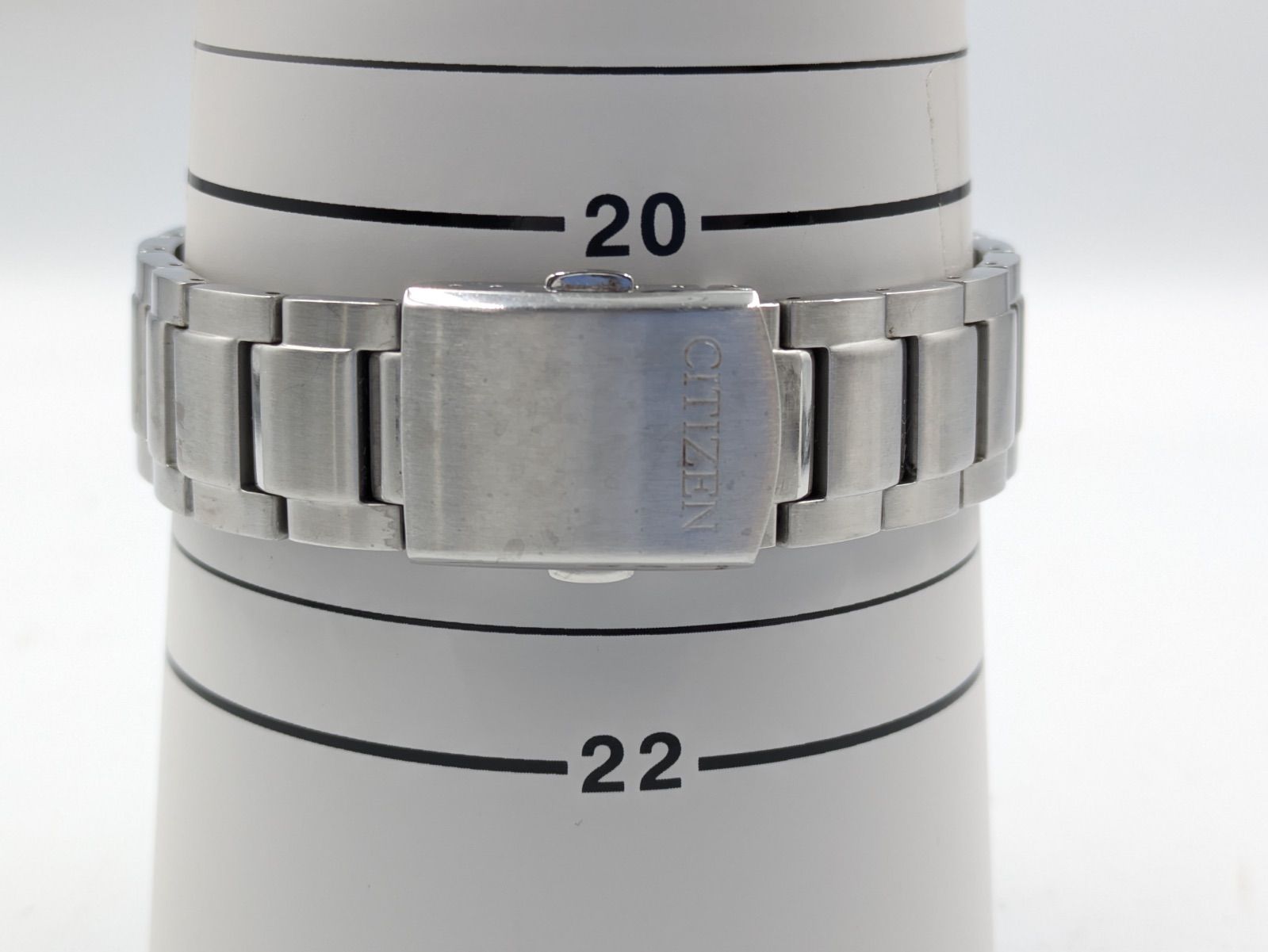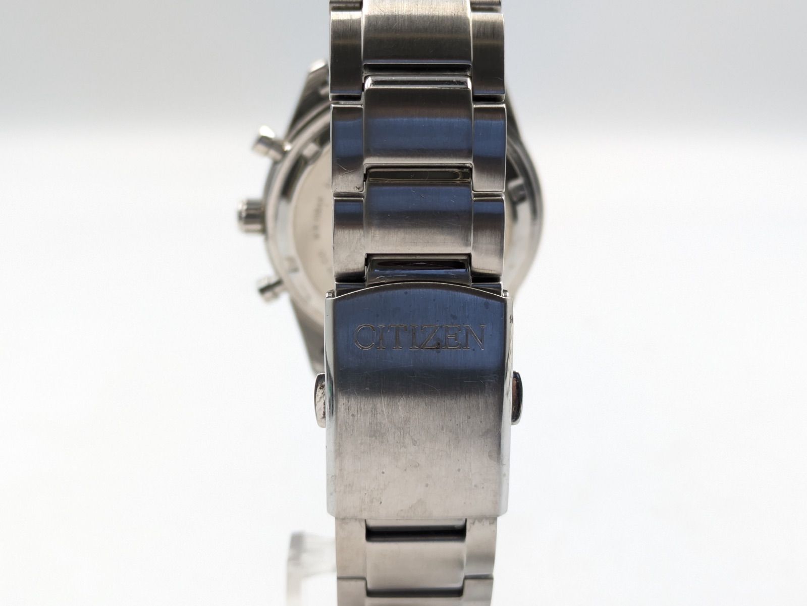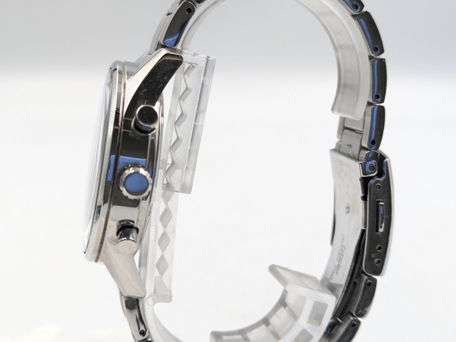 出品時点でエコ・ドライブによる稼働を確認しています。時刻表示、クロノグラフ針の動作、日付表示の切り替えは確認済みです。精度や長時間の動作、充電性能についての保証は行っておりません。