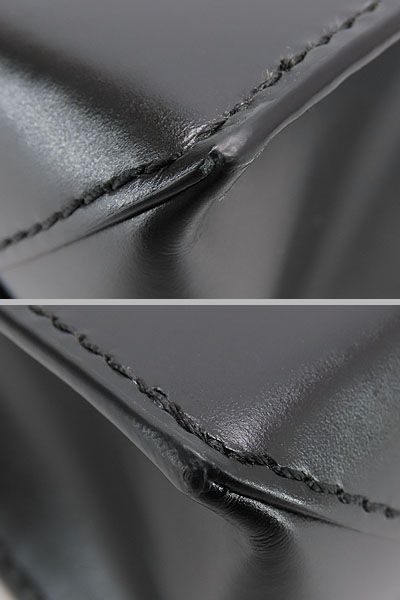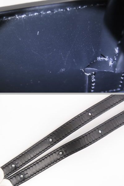 外側にわずかな薄スレやシワ、内側開口部のレザーに微細な薄スレ、ショルダーストラップの調節穴に使用痕・付け根にシワがございますが、使用感少なくとても綺麗なお品物になります。