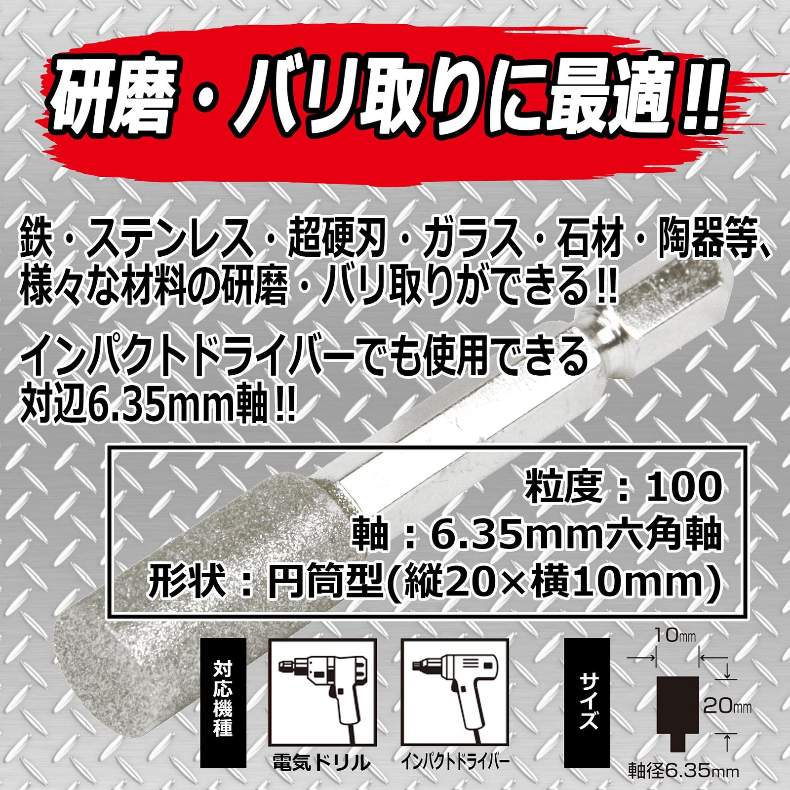 用途:鉄・ステンレス・超硬刃・ガラス・石材・陶器等の研磨・バリ取り