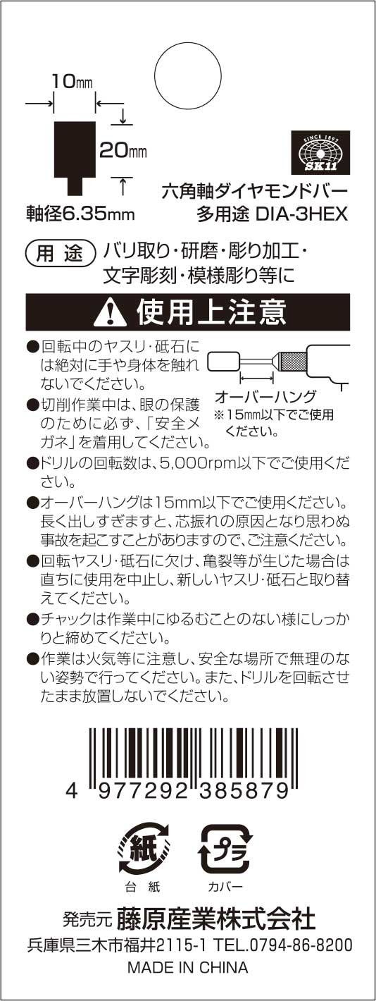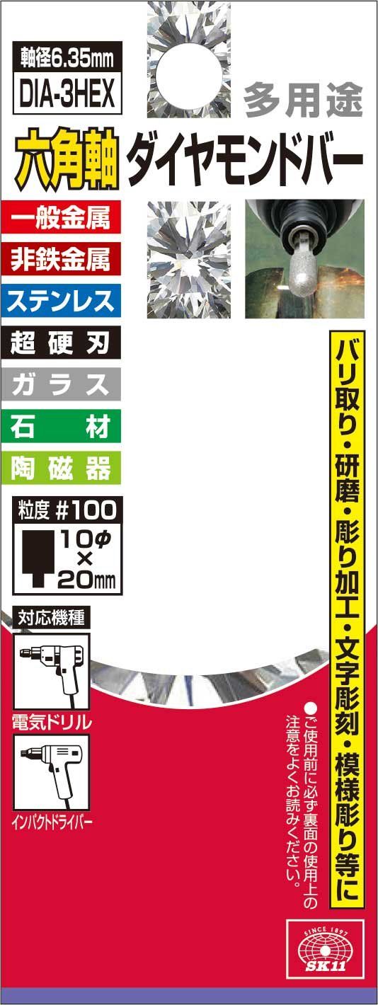 SK11(エスケー11) 六角軸ダイヤモンドバー #100 円筒型 10Φ×20mm DIA-3HEX