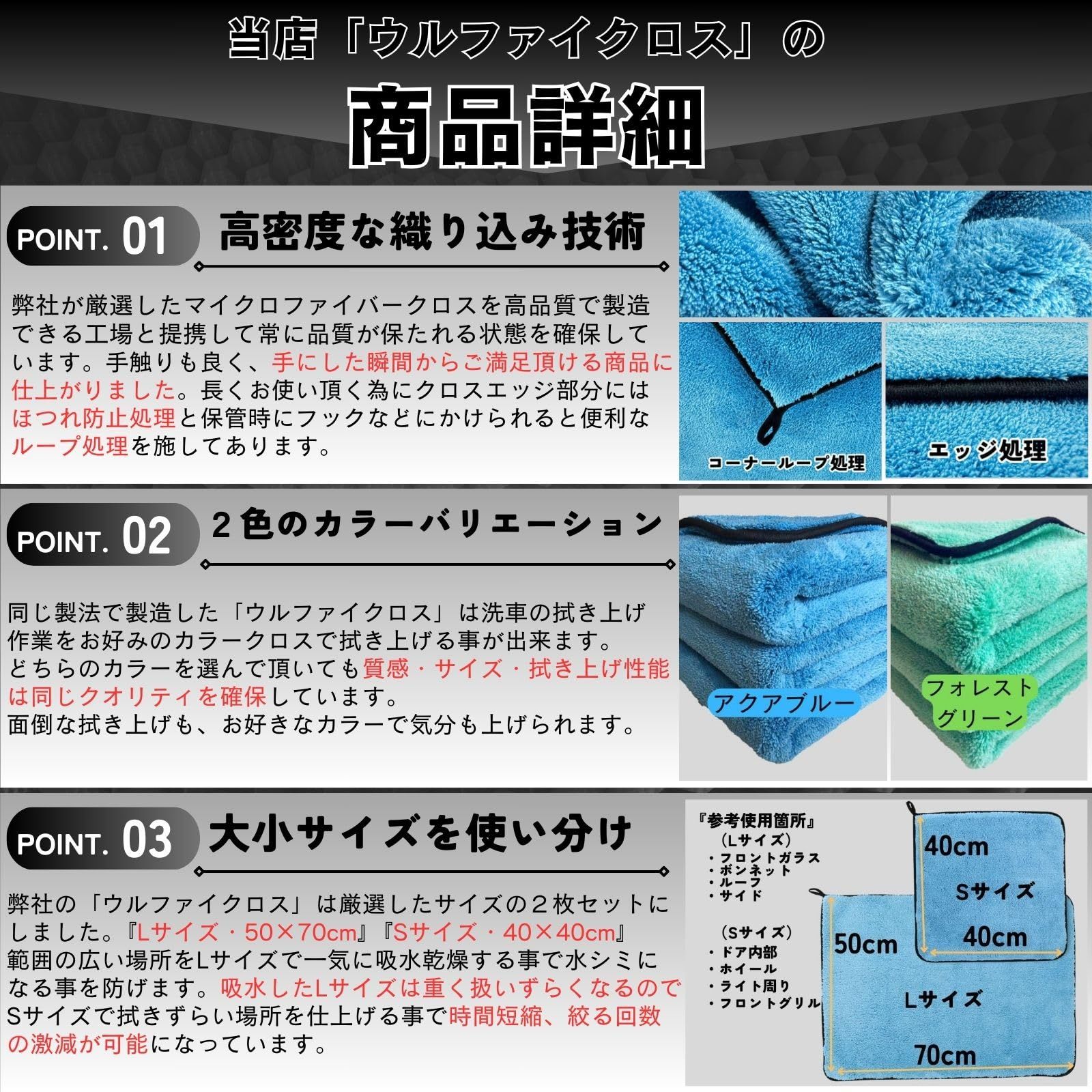 [洗車系インフルエンサー推奨] 洗車タオル 洗車 タオル マイクロファイバークロス ウルファイクロス 大小2枚セット 超吸水 時短 拭き取り 吸水タオル プロ仕様 洗車日和 (アクアブルー)