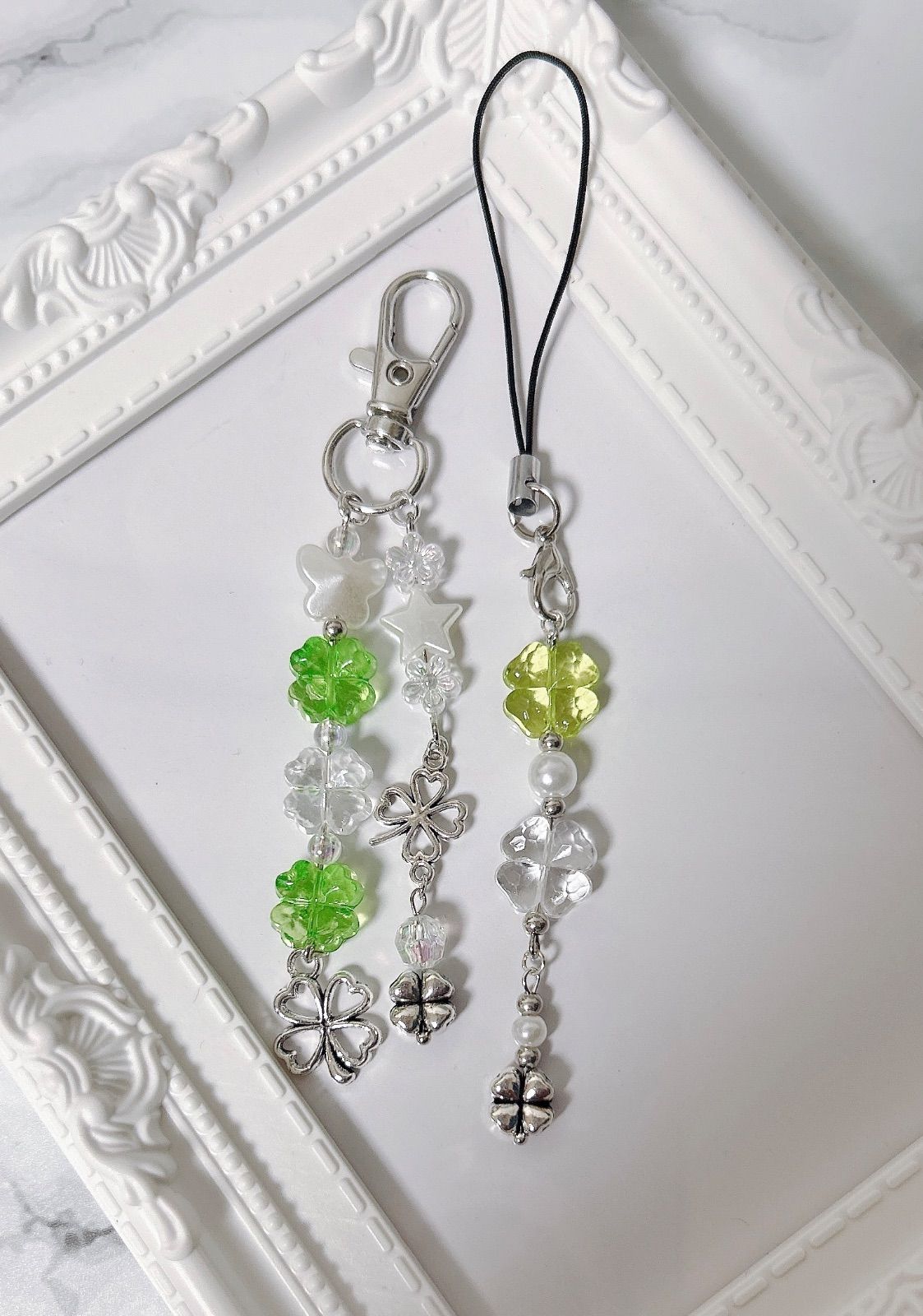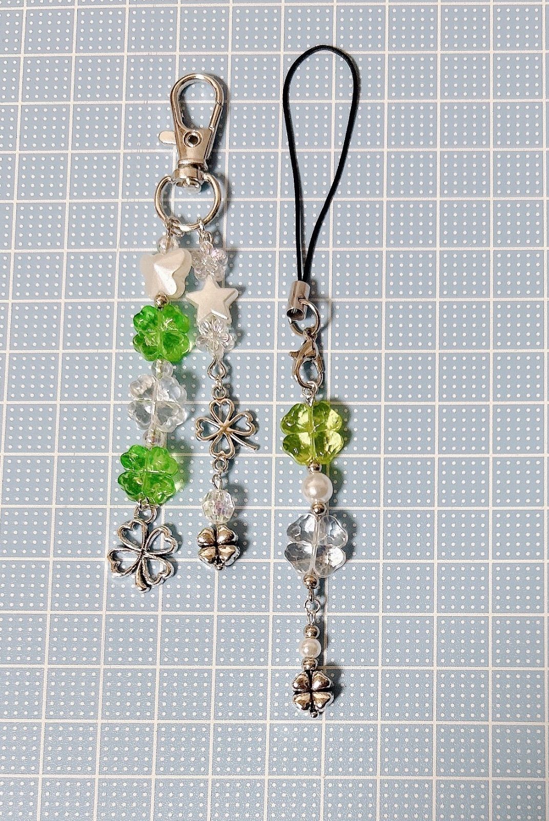 ビーズキーホルダー ビーズチャーム ビーズストラップ クローバー クローバーコア 2個セット