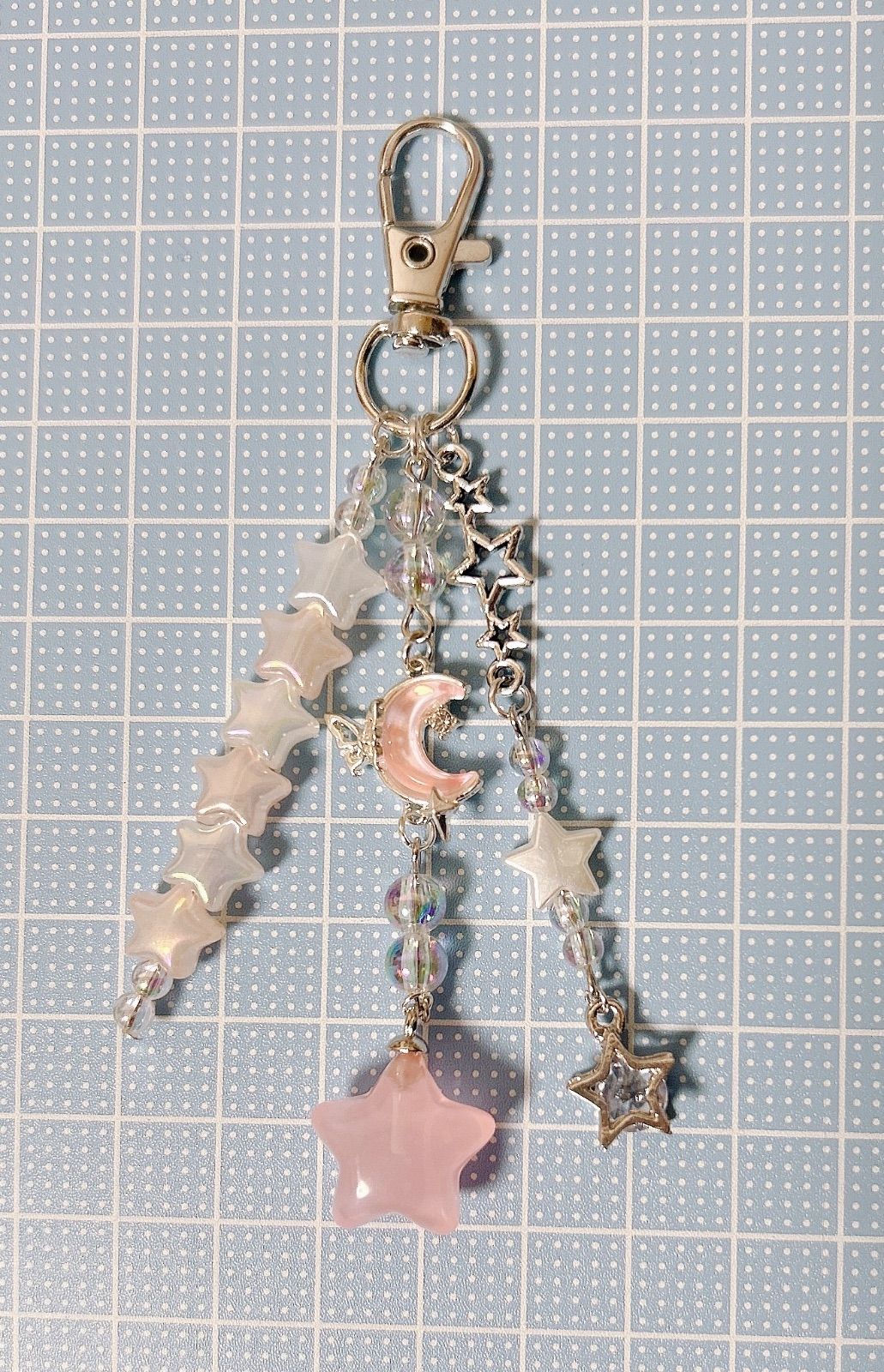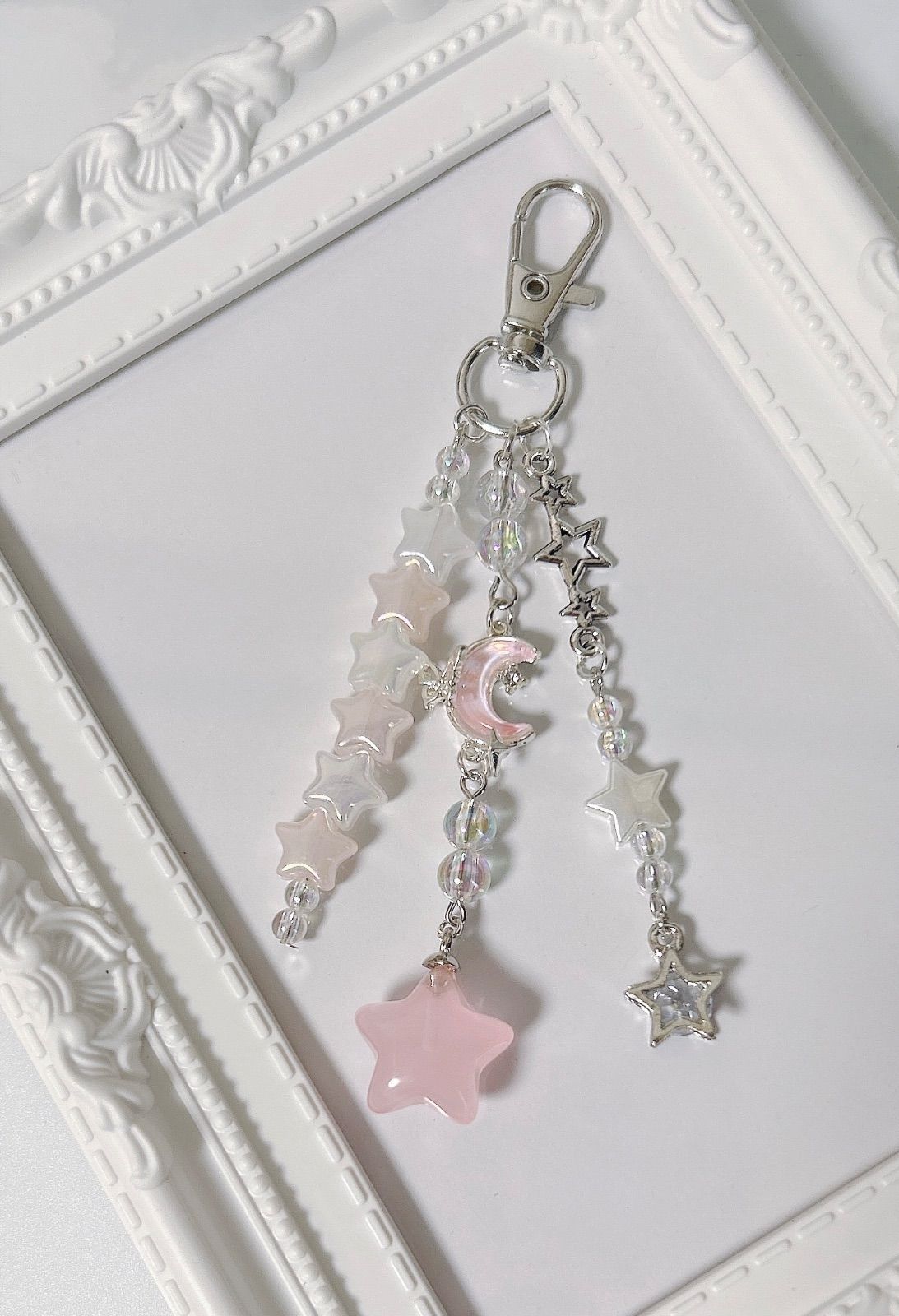 ビーズキーホルダー コレクトブック シール帳 月 星 ピンク y2k