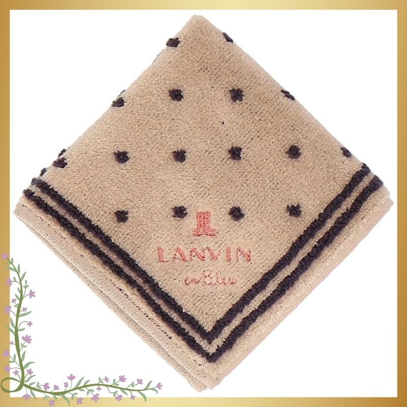 【LANVIN en Bleu(ランバンオンブルー)のレディース タオルハンカチ】小さめなドット柄にロゴ刺繍が大人かわいいデザインのタオルハンカチ。20のミニサイズで小さなバッグの方でも持ち運び楽ちんです。