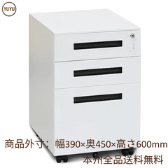3段 スチール製 デスクワゴン おしゃれ 完成品 キャスター付き サイドワゴン 鍵付き シリンダー錠 3段オールロック