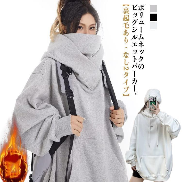 【裏起毛ありなし2タイプ】ボリュームネックのビッグシルエットパーカー。