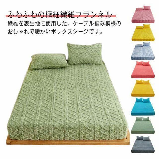 ふわふわの極細繊維フランネル繊維を表生地に使用した、ケーブル編み模様のおしゃれで暖かいボックスシーツです。