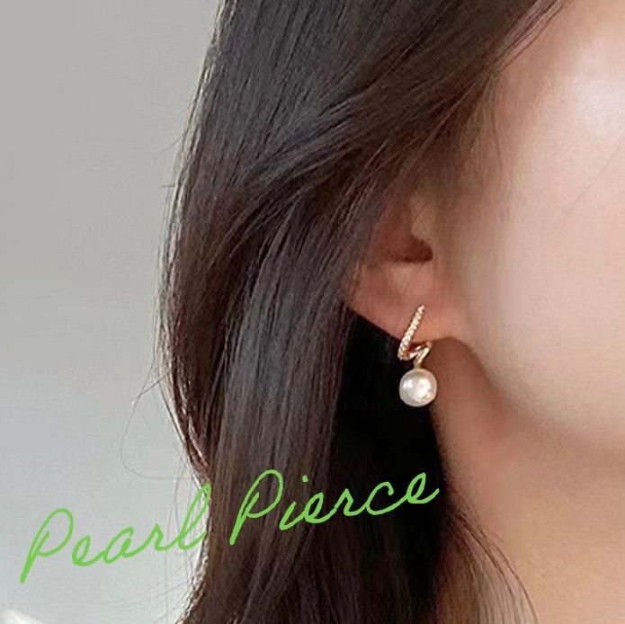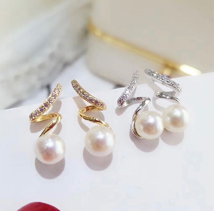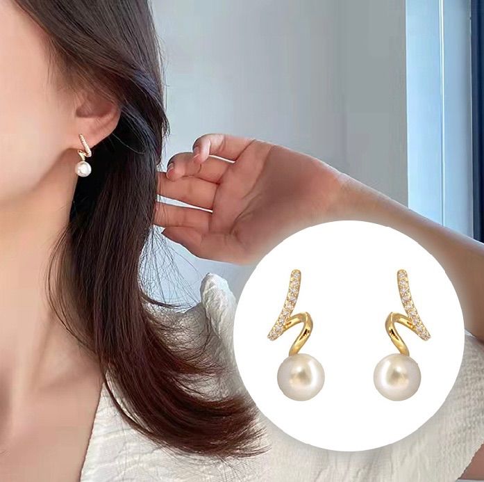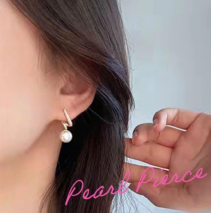 シンプルなツイストデザインで、ラインストーンとパールが印象的なピアスです。