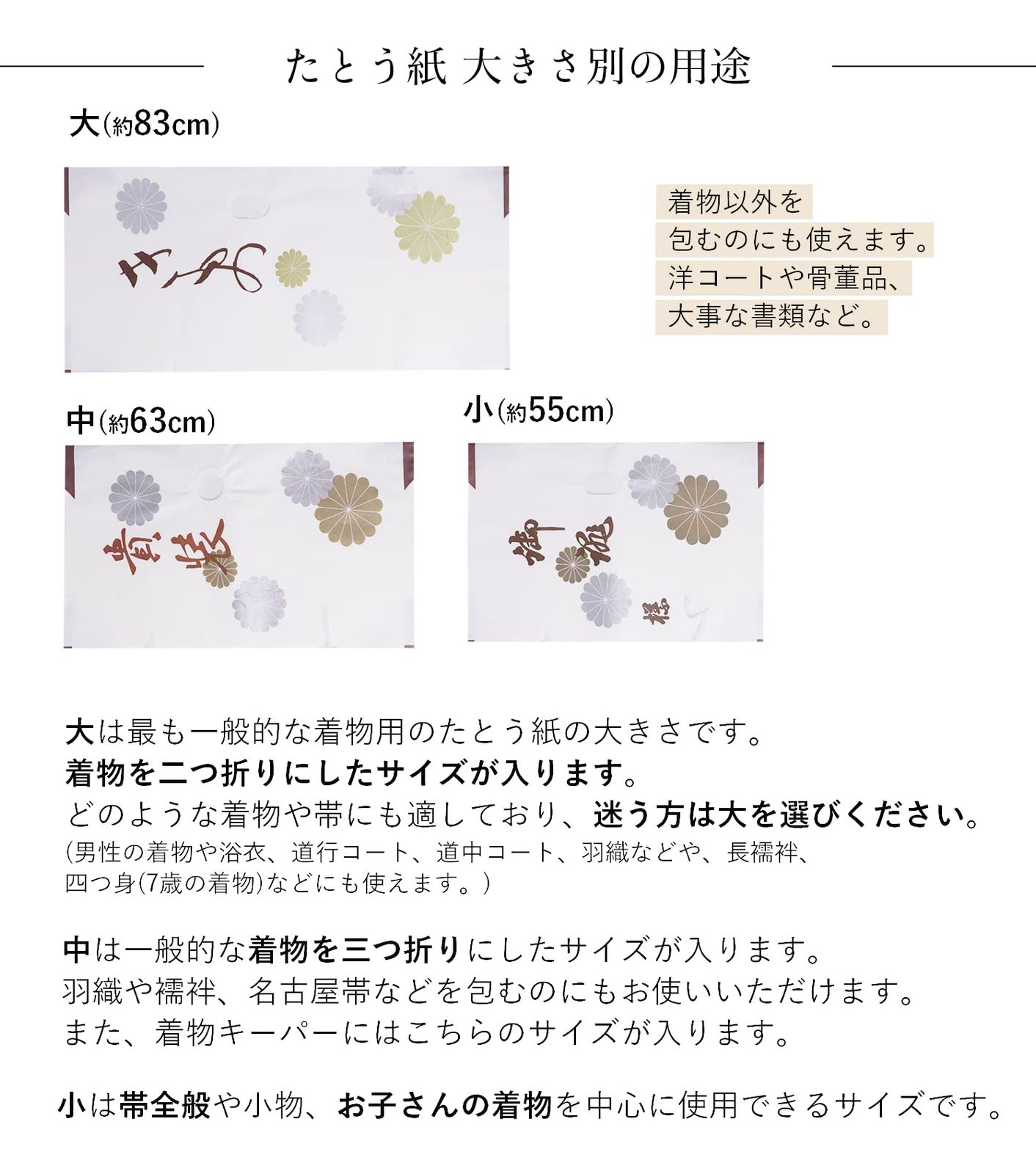 [あめてまり] たとう紙 10枚 55cm 小サイズ 帯用 日本製 金菊柄 薄紙付 [中紙あり] お徳用 高級 雲龍和紙 七五三着物 金駒 きもの文庫 窓付き 保存用 10枚セット 着物入れ物 着物包み紙 畳紙 保護 収納 菊柄