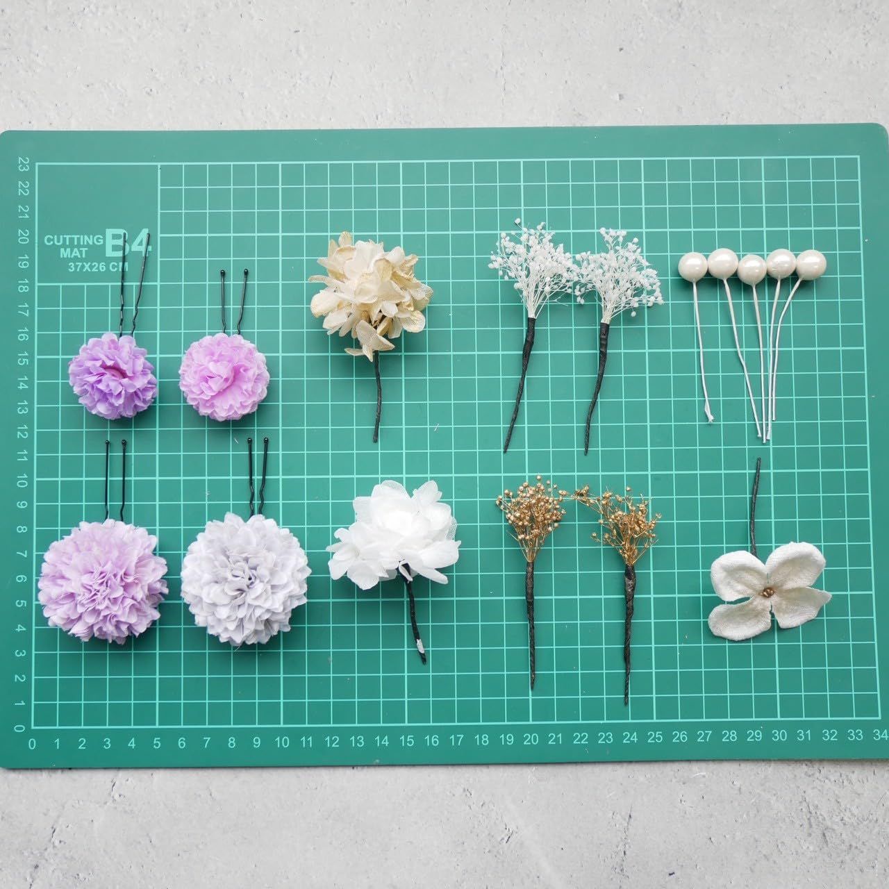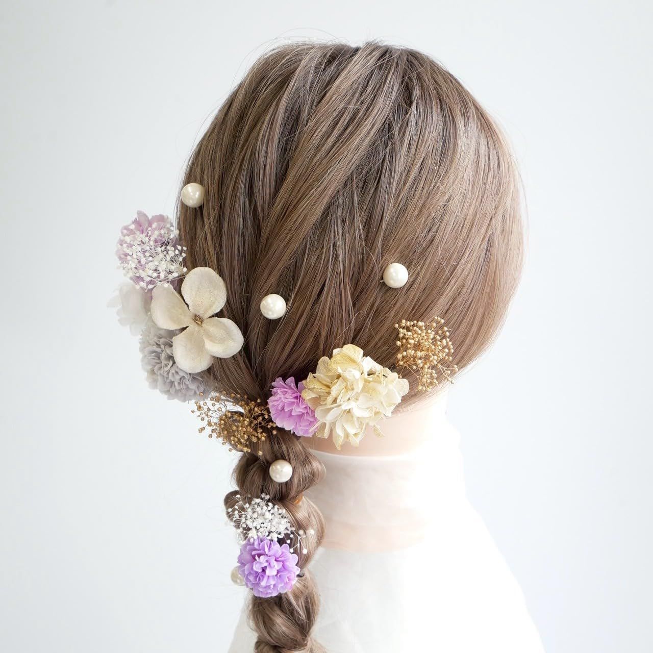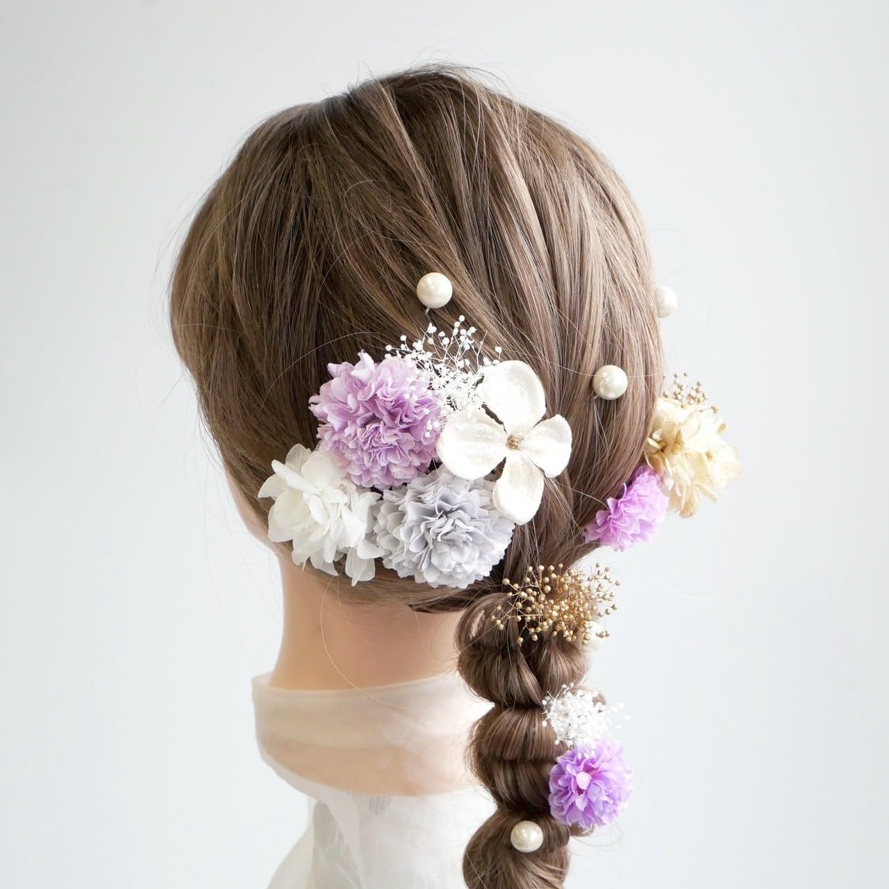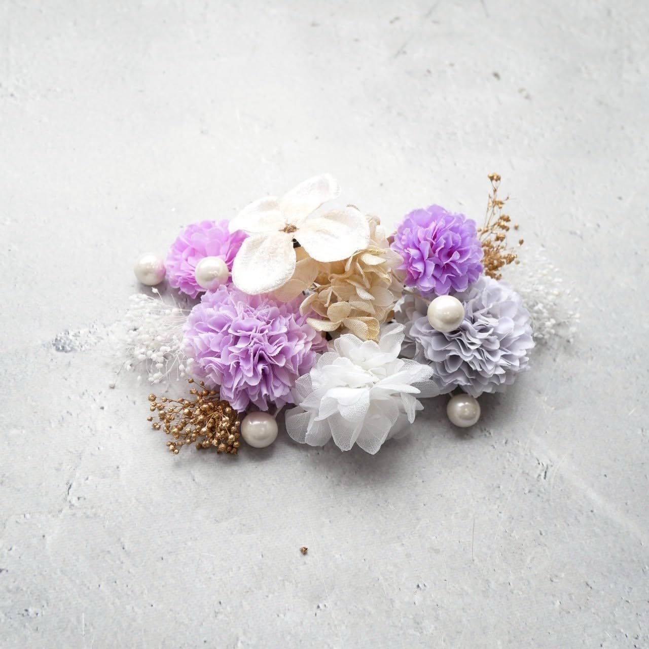 [Lomeri] ロメリ 髪飾り【6色展開】 ドライフラワー マム 着物 和装 浴衣 飾り 振袖 成人式 結婚式 卒業式 七五三 ウエディング かわいい 七五三 U (パープルU46)