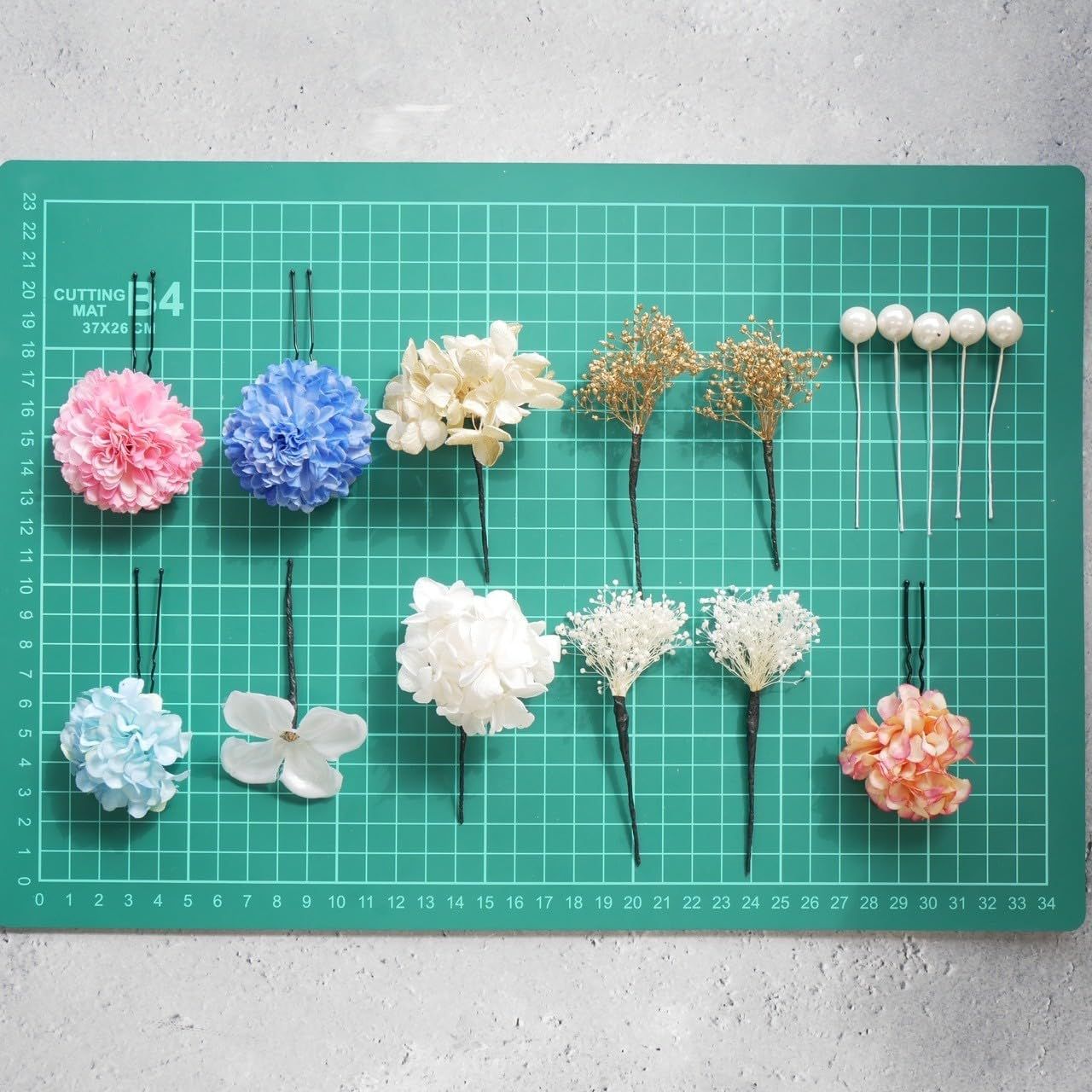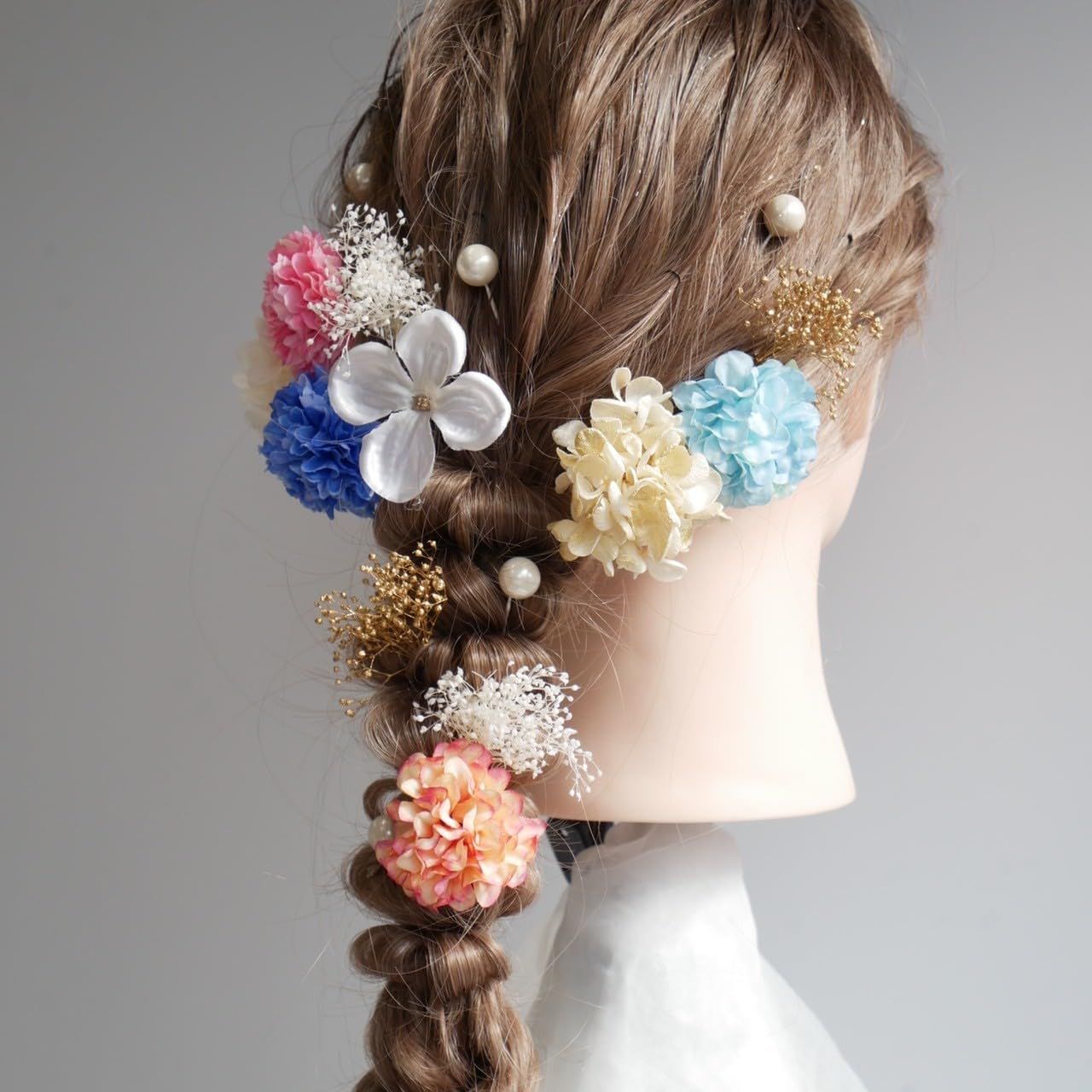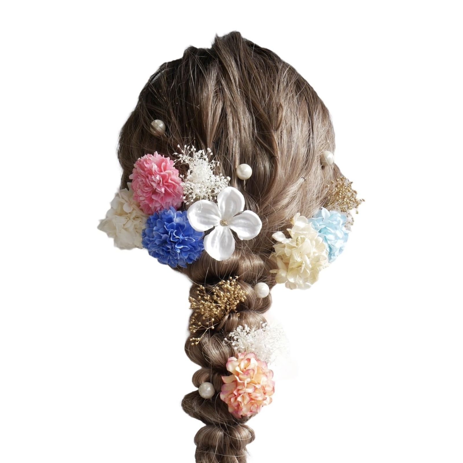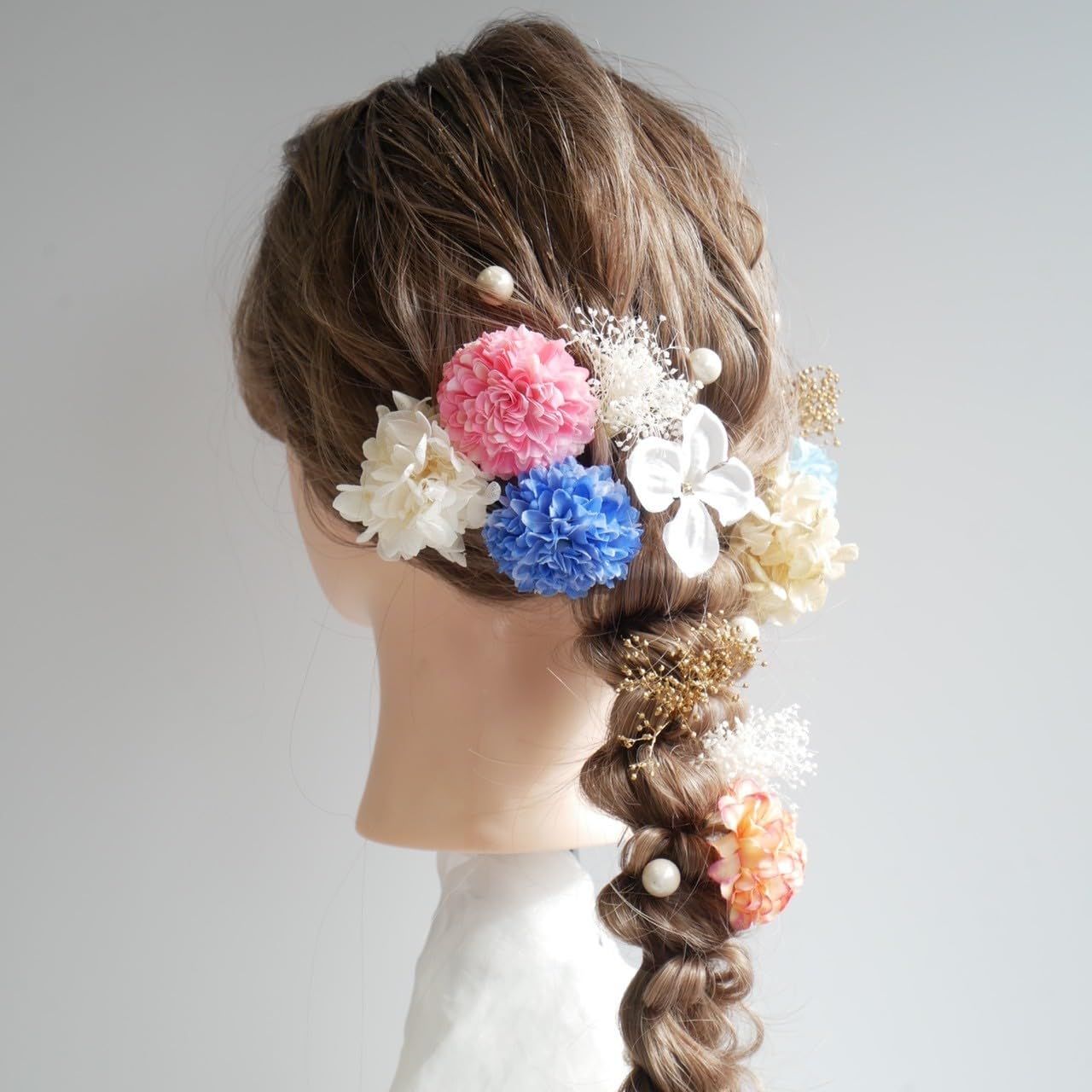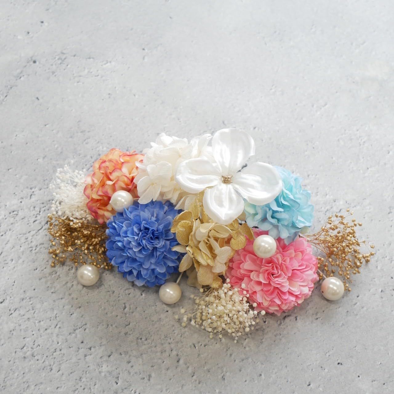 [Lomeri] ロメリ 髪飾り【6色展開】 ドライフラワー マム 着物 和装 浴衣 飾り 振袖 成人式 結婚式 卒業式 七五三 ウエディング かわいい 七五三 U (ブルーピンクU48)